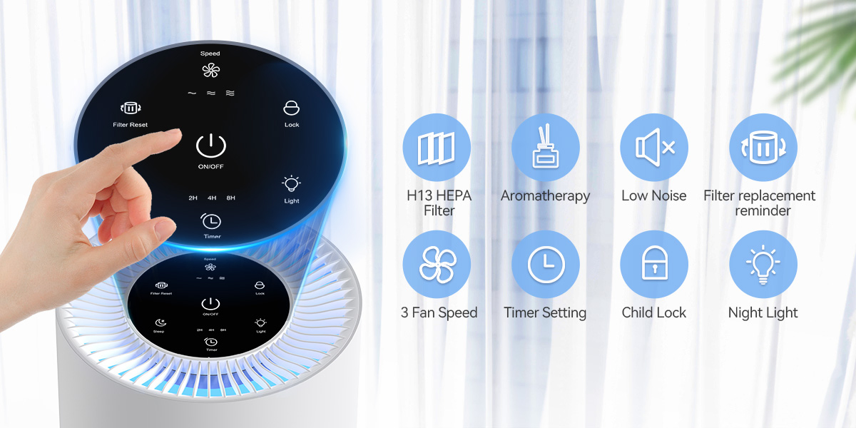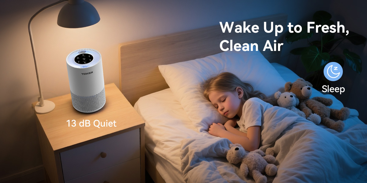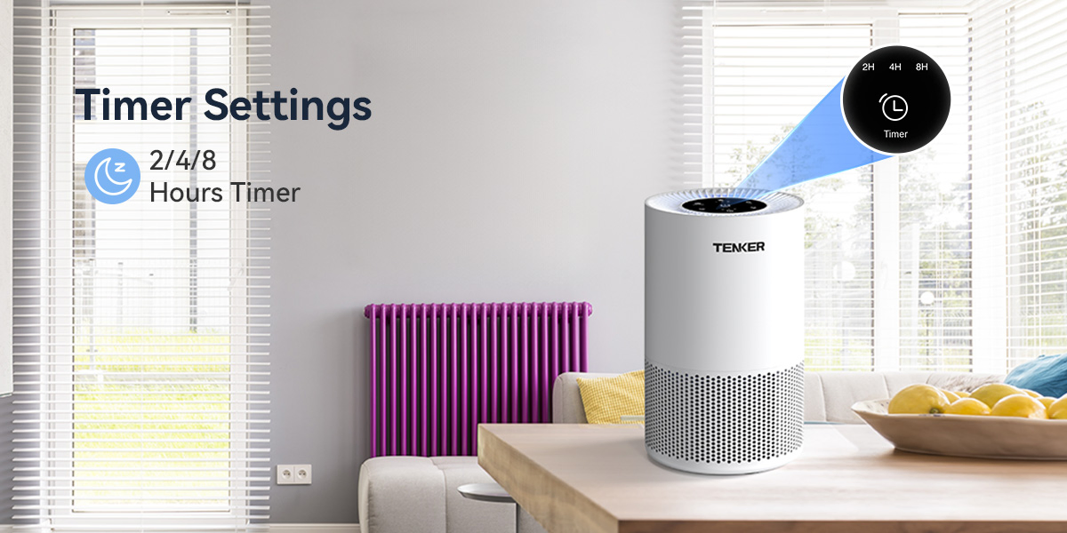 TENKER AP-6980 Air Purifier White US 1300ft² Large Rooms H13 Heap 3-Stage Filtration 3 Speeds 3 Timer W/Light Air Cleaner Machine