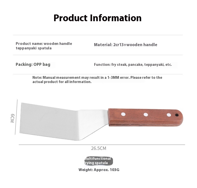 Product information:Specification: wooden handle teppanyaki Turner Style: modern simplicity Material: Wood, stainless steel