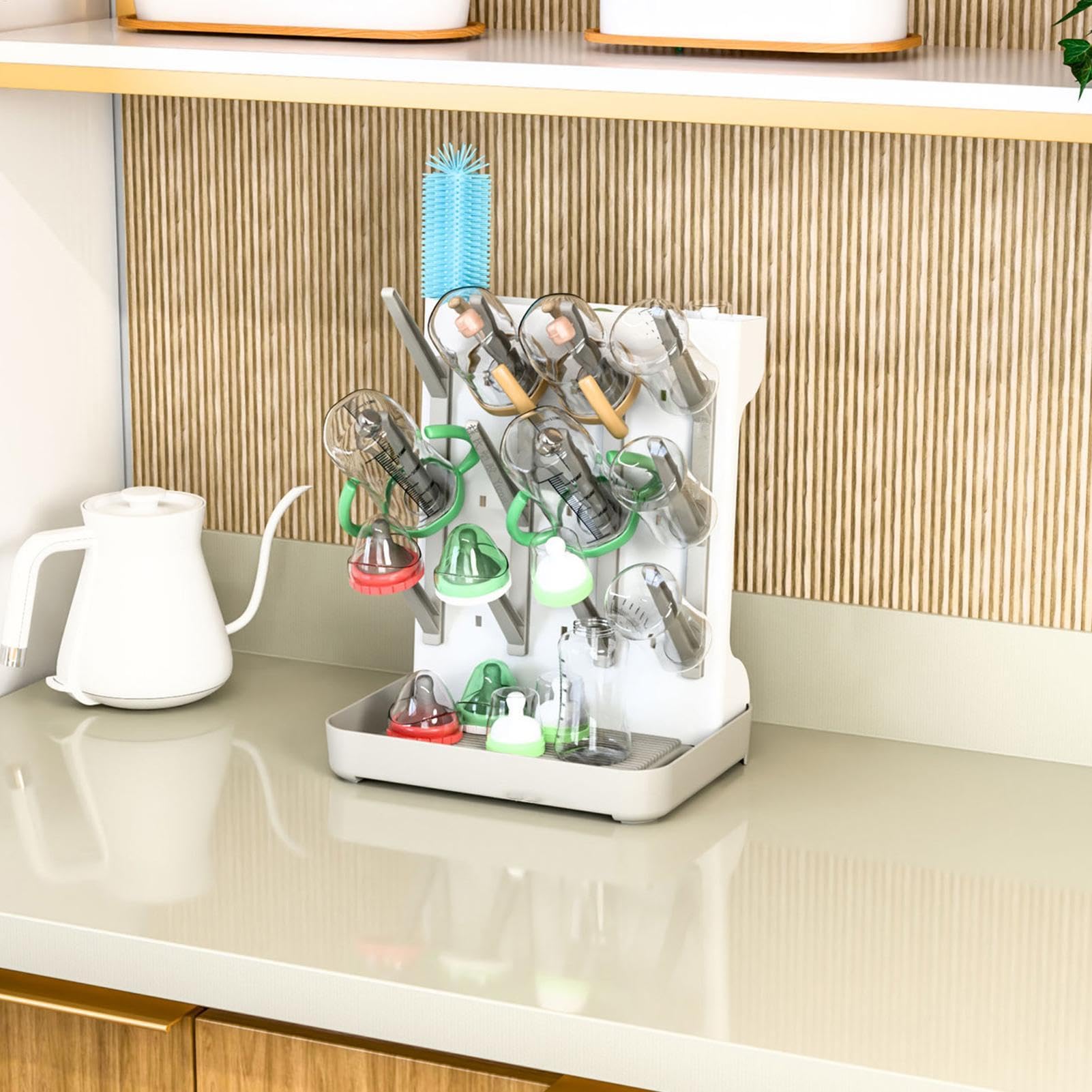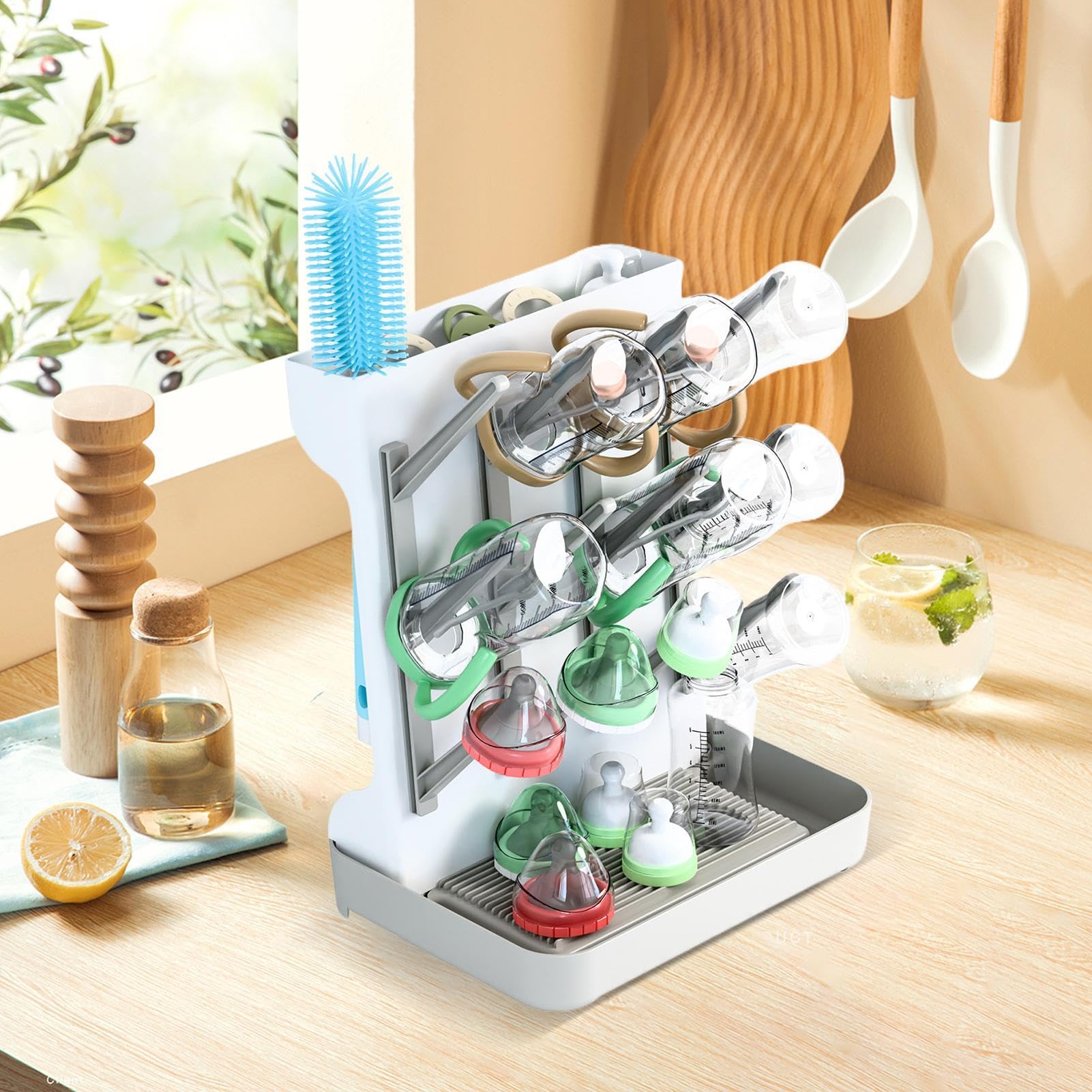 SPACE SAVING: The bottle drying rack is designed for your different baby bottle kitchen storage organization. They keep baby small parts away from water and smaller countertop space.