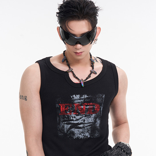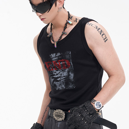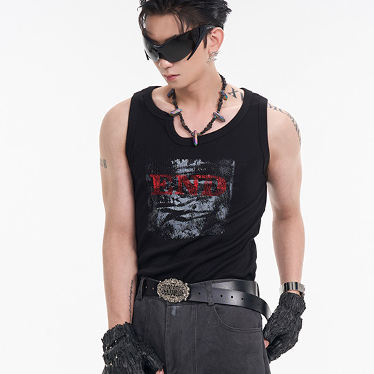 Textured Rowan Elastic Vest Men's Autumn Irregular