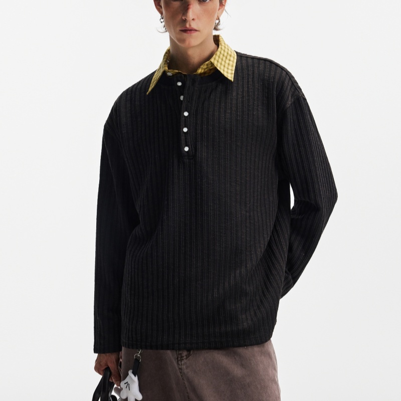 Textured Stripe T-shirt Simple Long Sleeve Top