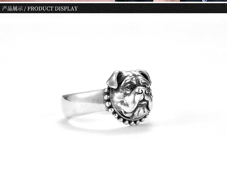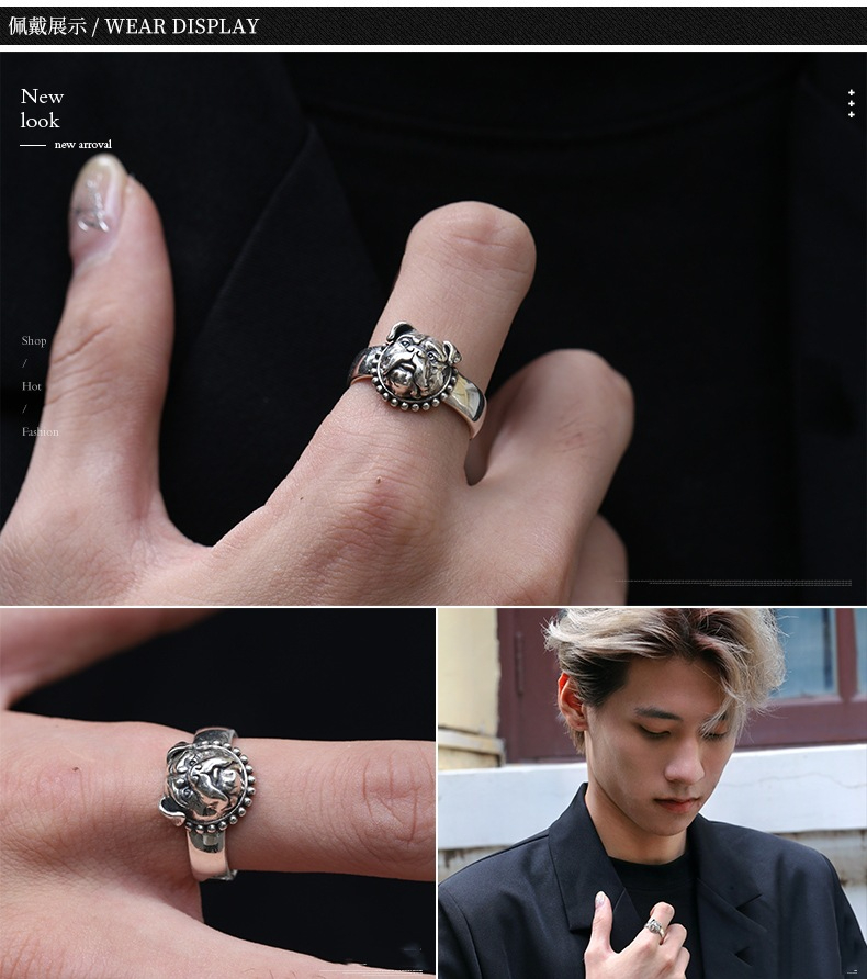 Thai Silver Retro Personality Dog Ring Trendy Adjustable