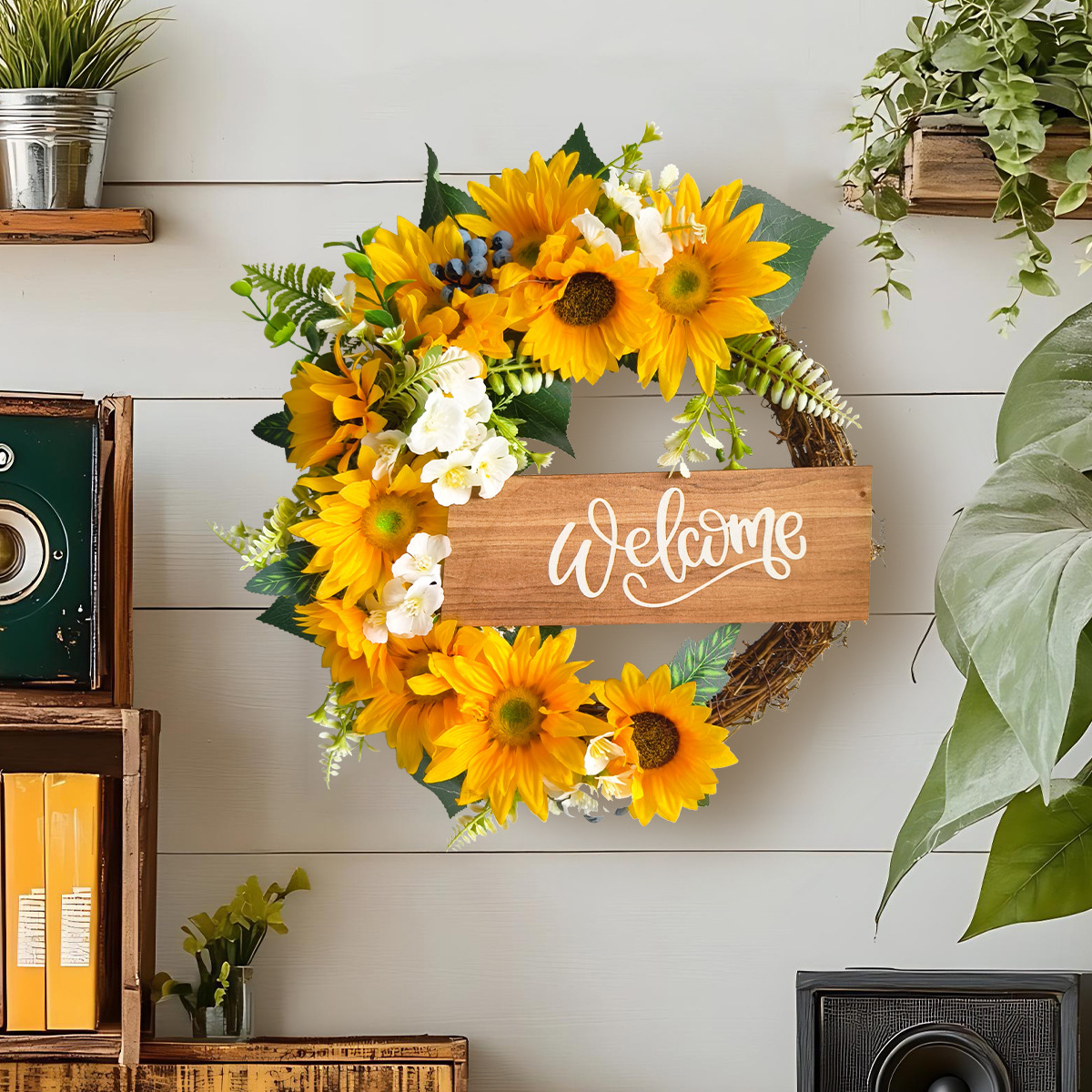 Size: Sunflower wooden plaque wreath