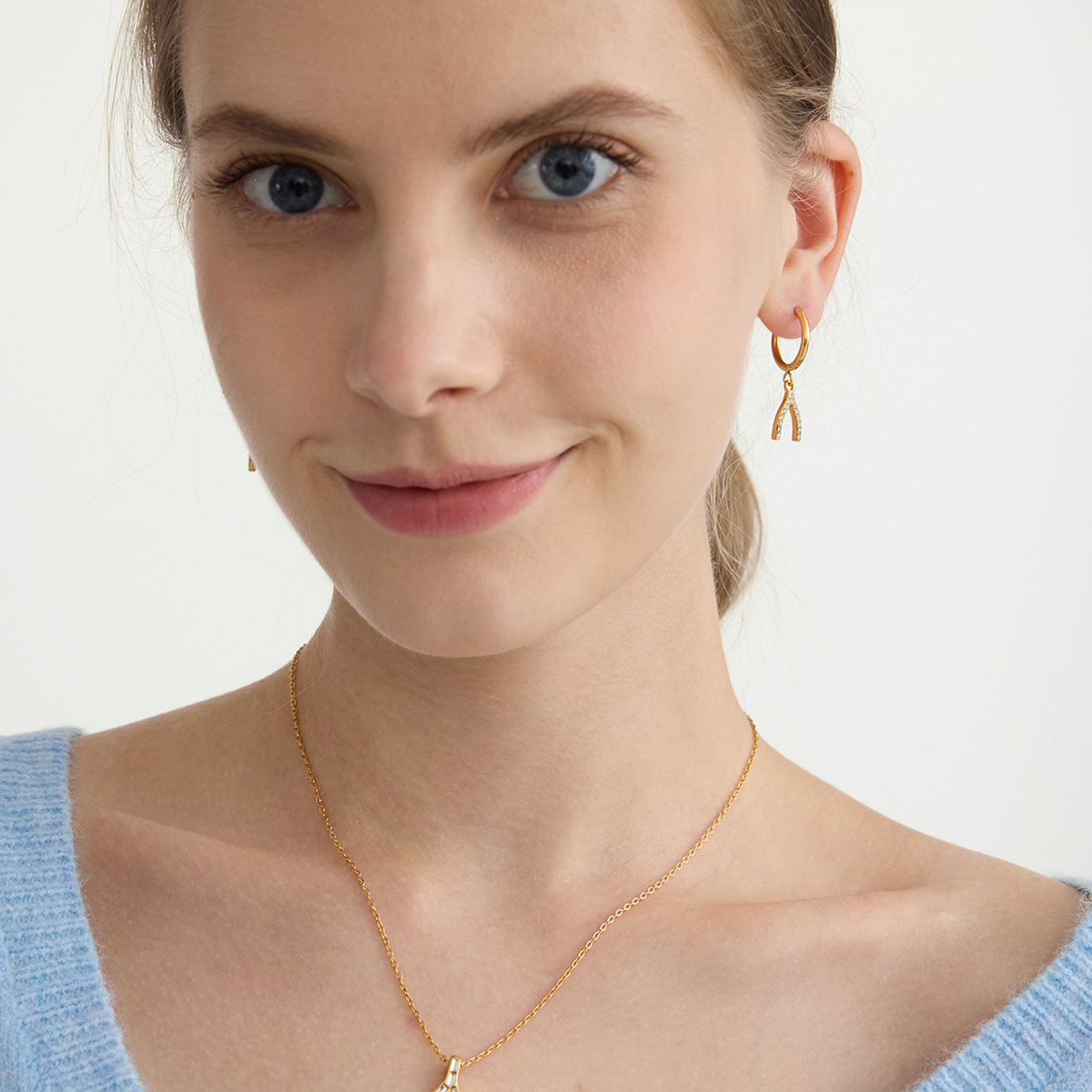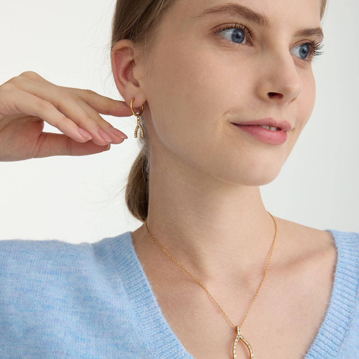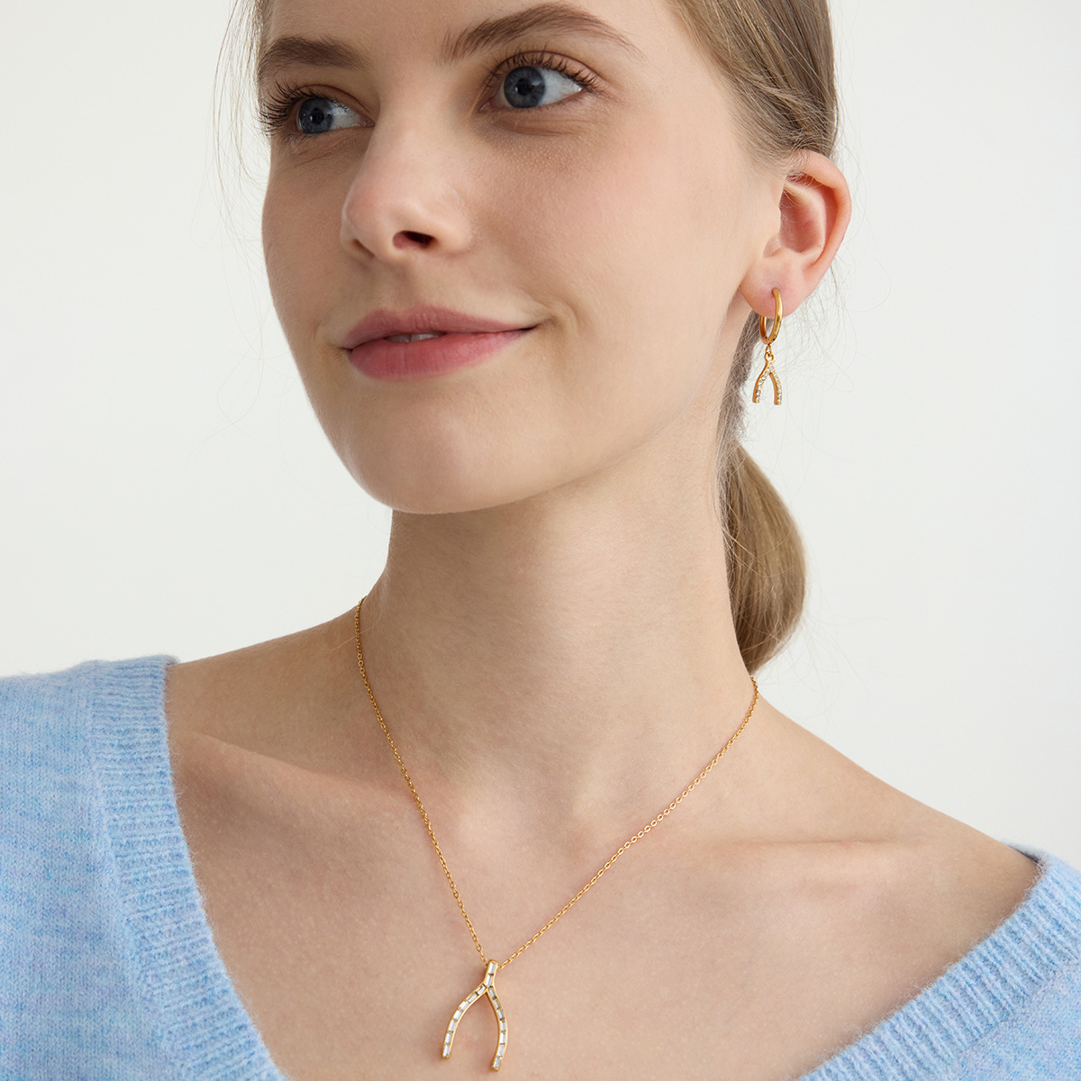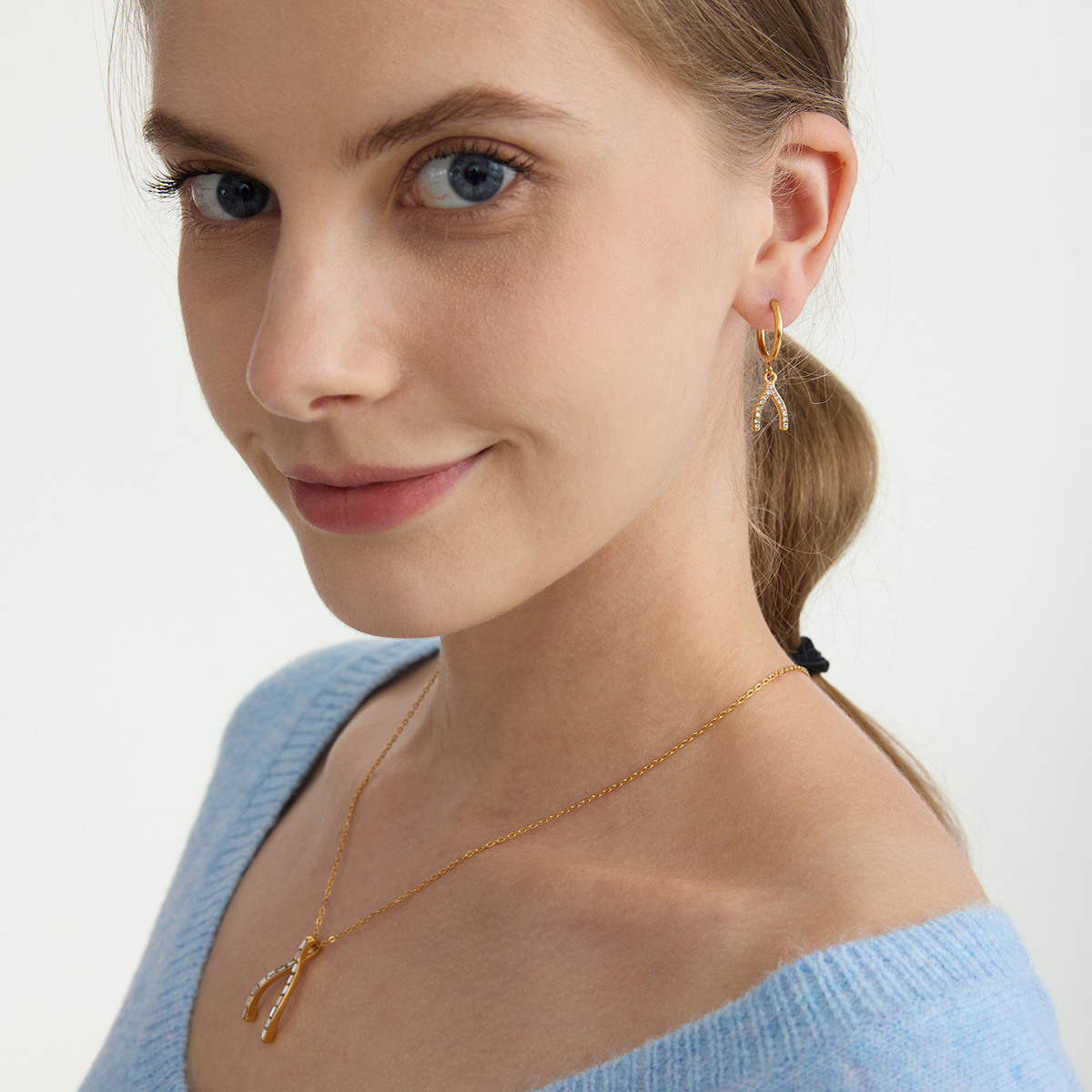 Thanksgiving Wish Bone Necklace And Earring Set For Women