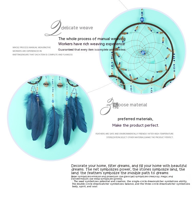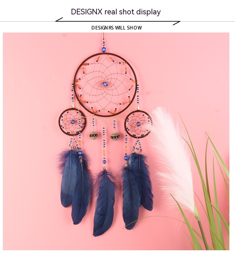 Product information:Color: navy blueMaterial: Hoop feather Size: 16 * 50cmStyle: Pastoral Craft: hand-woven Category: pendant