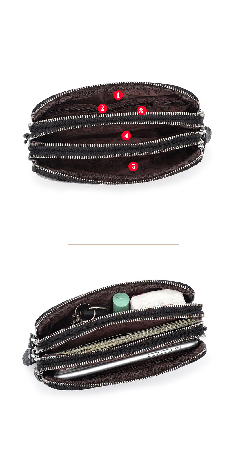 Internal structure of the small bag: bill holder, change slot, zipper compartment, certificate slot
