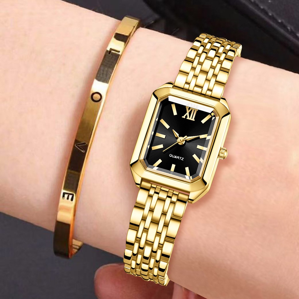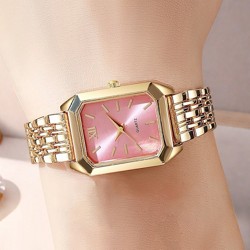 Colors: Gold strap with white dial, gold strap with black dial, gold strap with pink dial, gold strap with green dial, silver strap with white dial, silver strap with black dial, silver strap with pink dial, silver strap with green dial, gold strap with black dial + bracelet, gold strap with green dial + bracelet, gold strap with pink dial + bracelet, gold strap with white dial + bracelet, silver strap with green dial + bracelet