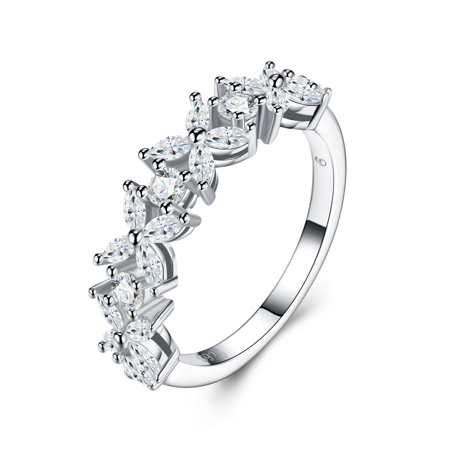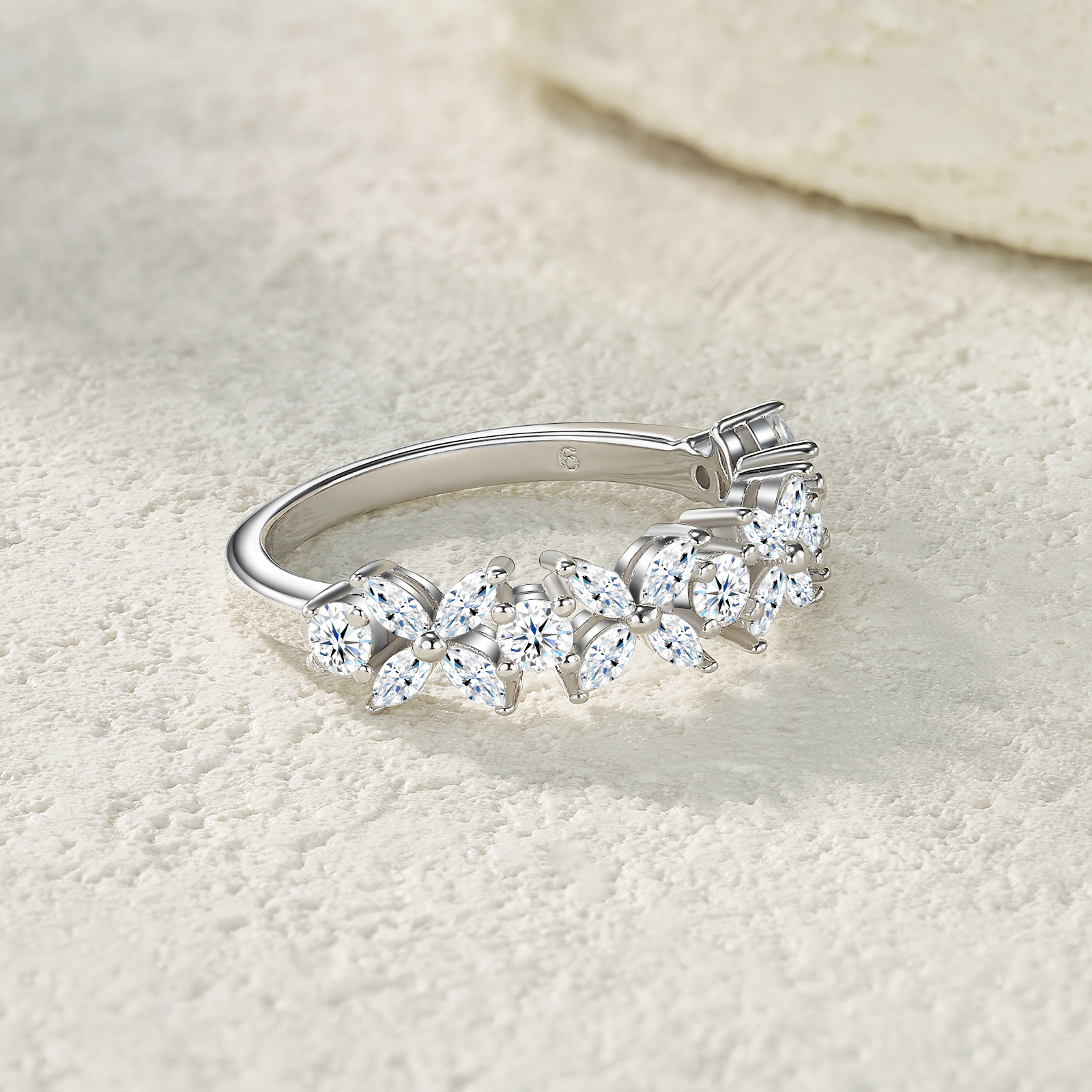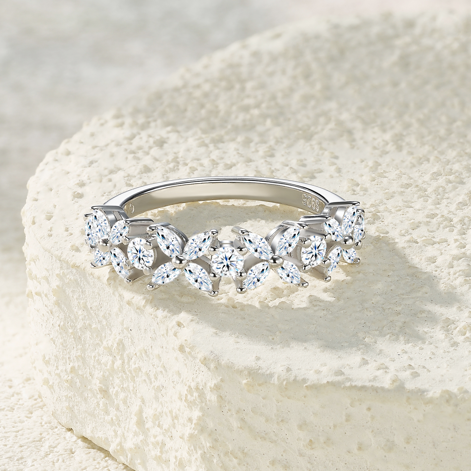 The Lucky Leaf - A Luxurious And Fashionable Minimalist Jewelry Ring Set With Top-quality Moissanite, Made Of S925 Silver Electroplated With Platinum.