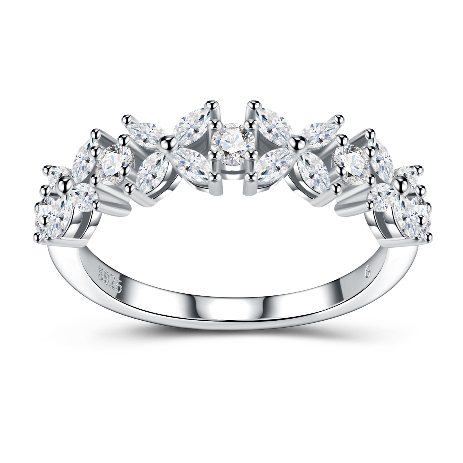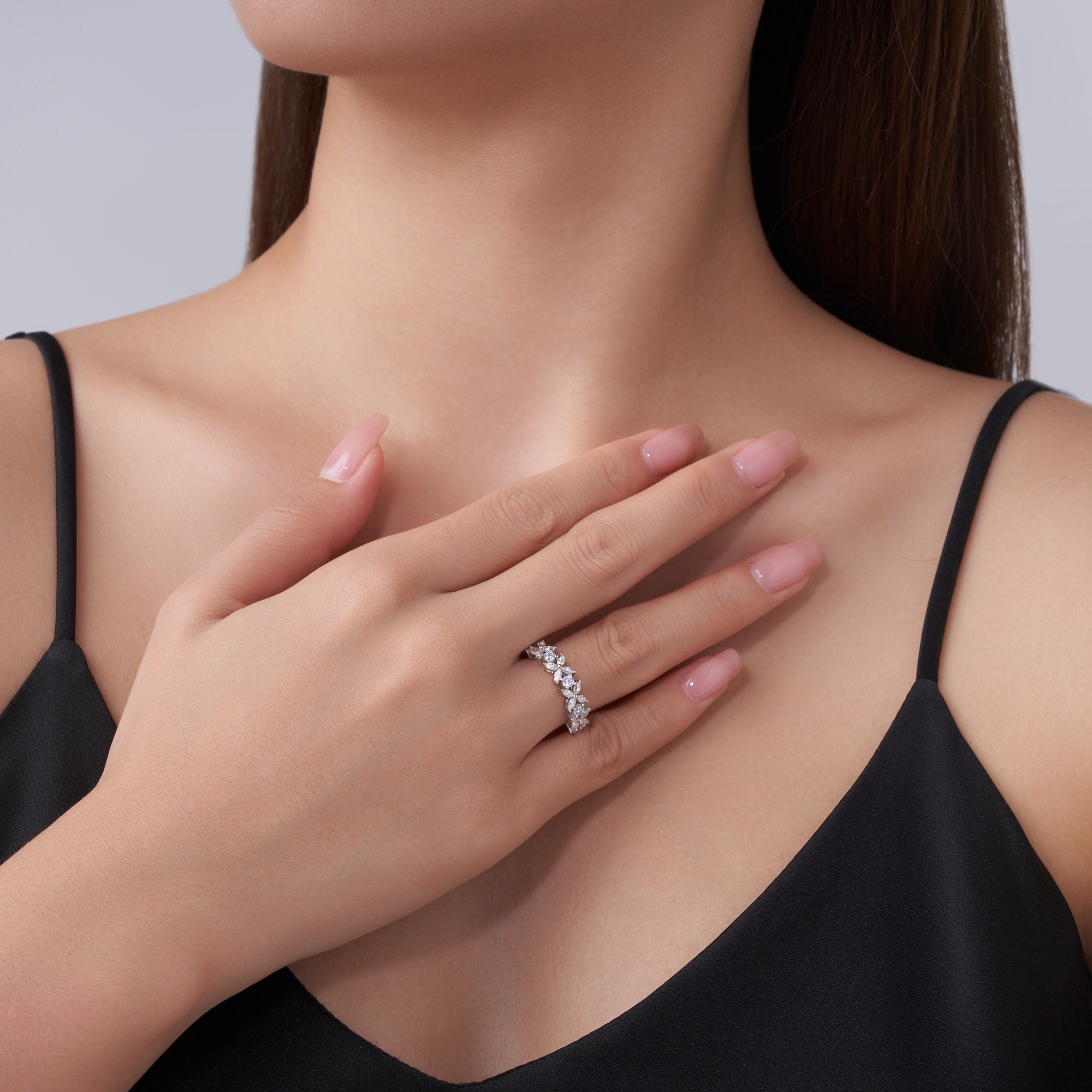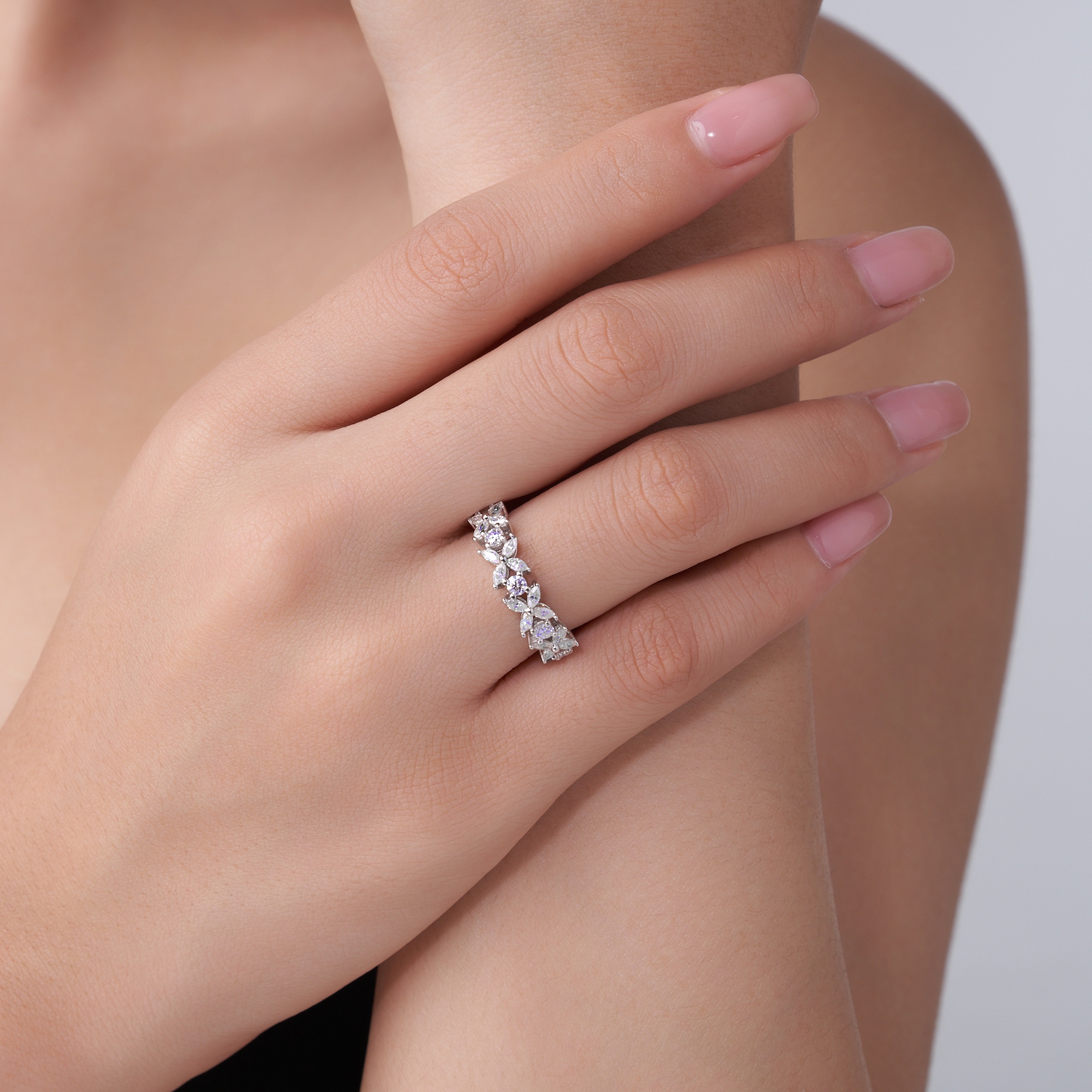 The Lucky Leaf - A Luxurious And Fashionable Minimalist Jewelry Ring Set With Top-quality Moissanite, Made Of S925 Silver Electroplated With Platinum.