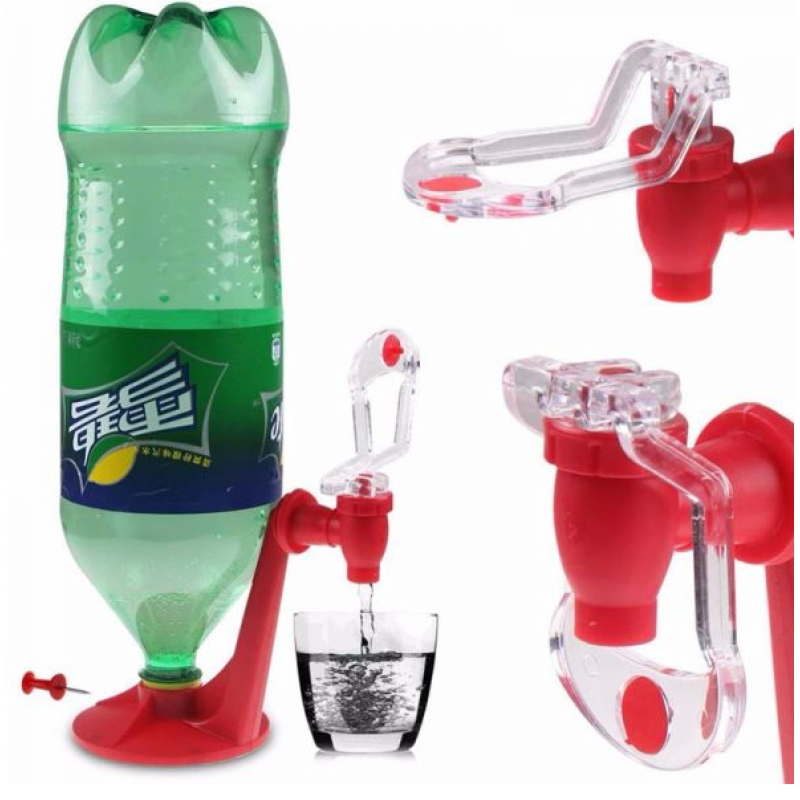 Have you ever wanted to have your very own soda machine at home? Well now you can turn any 2 liter bottle into a soda dispenser! Just twist the Magic Tap Dispenser on top of any bottle of soda, invert the bottle, and then serve fizzy drinks right into your glass via the convenient push-in dispenser! Please use only carbonated drinks as pressure is needed for the dispenser to work, and remember to squeeze the bottle!