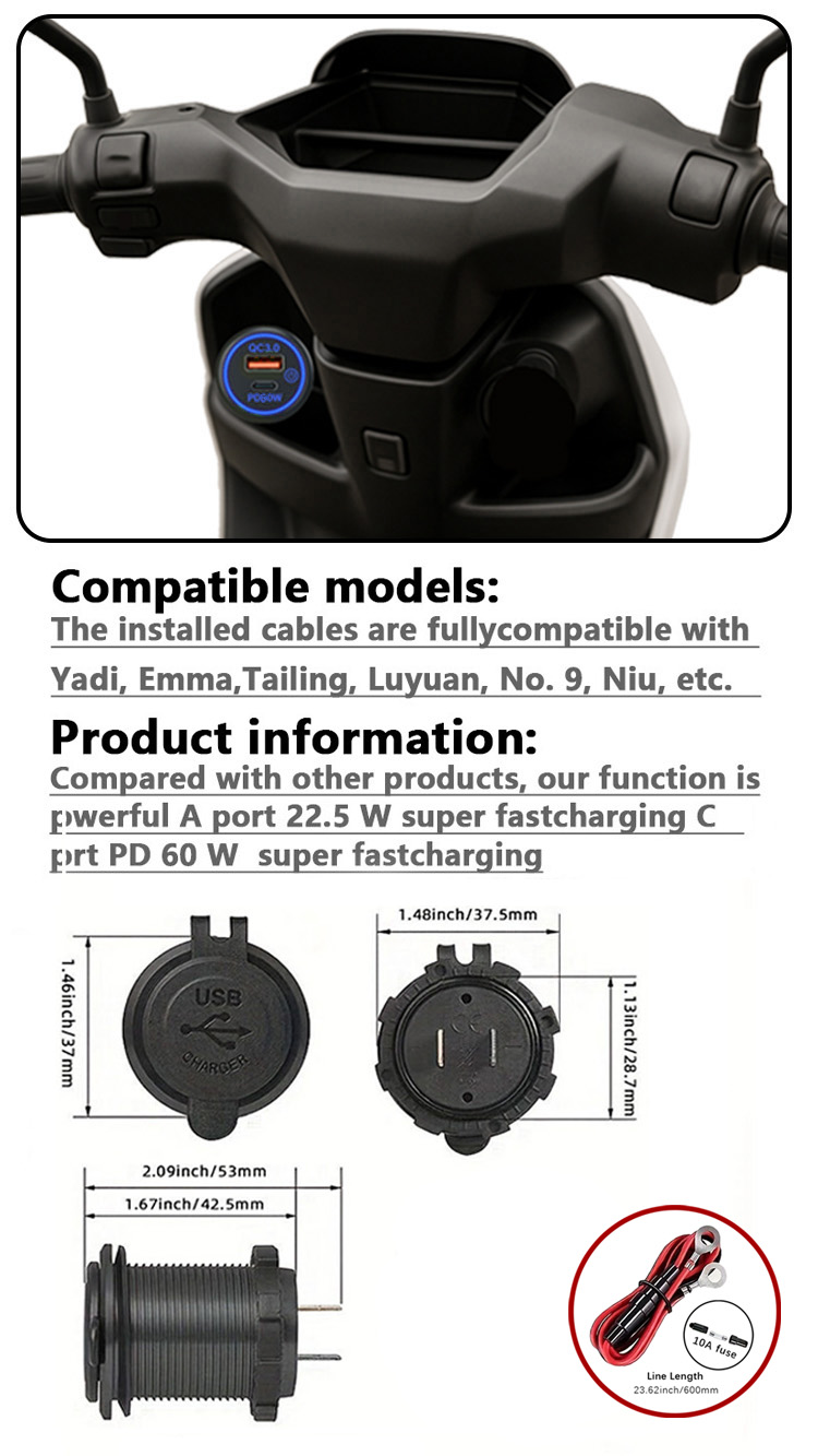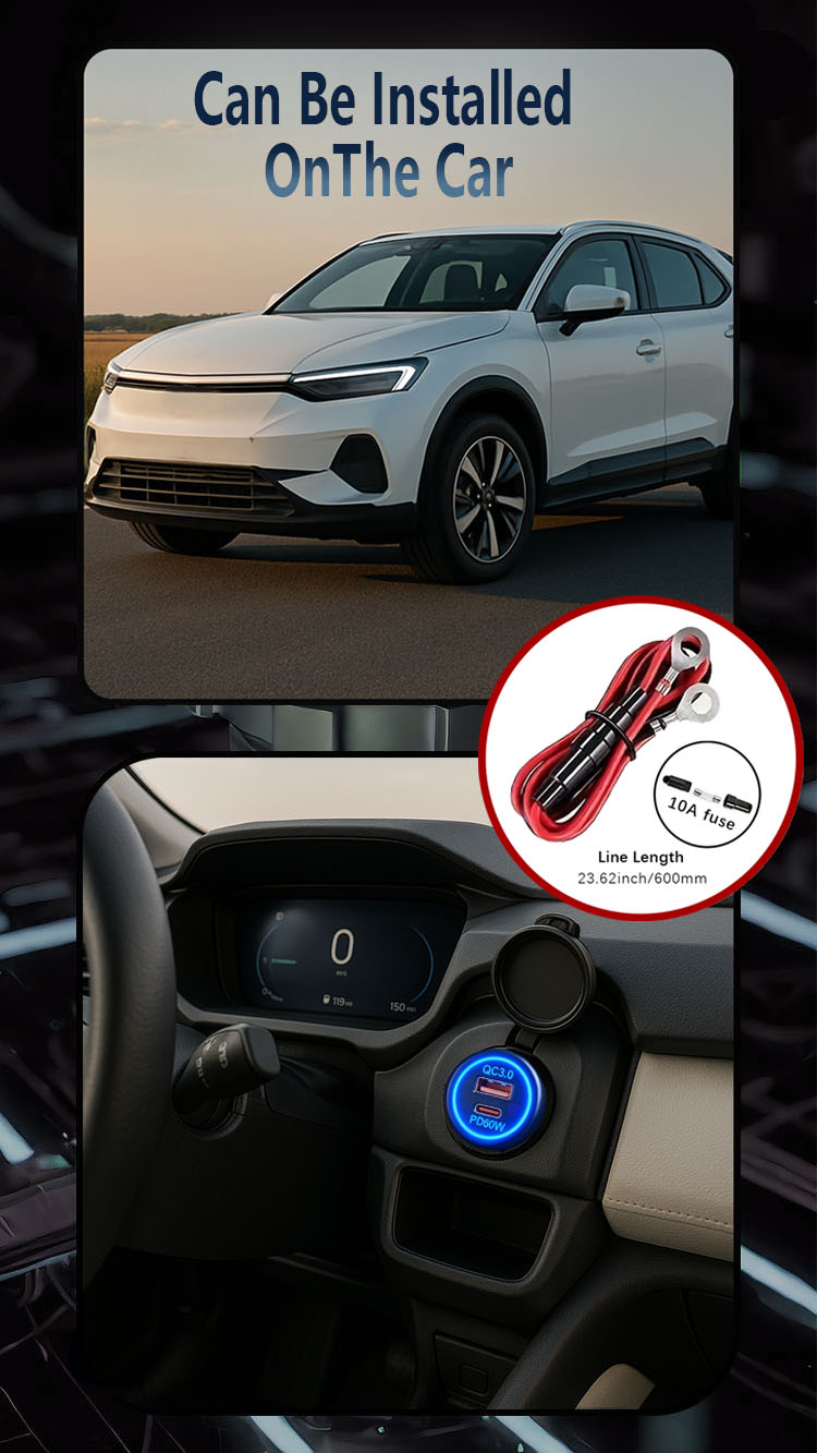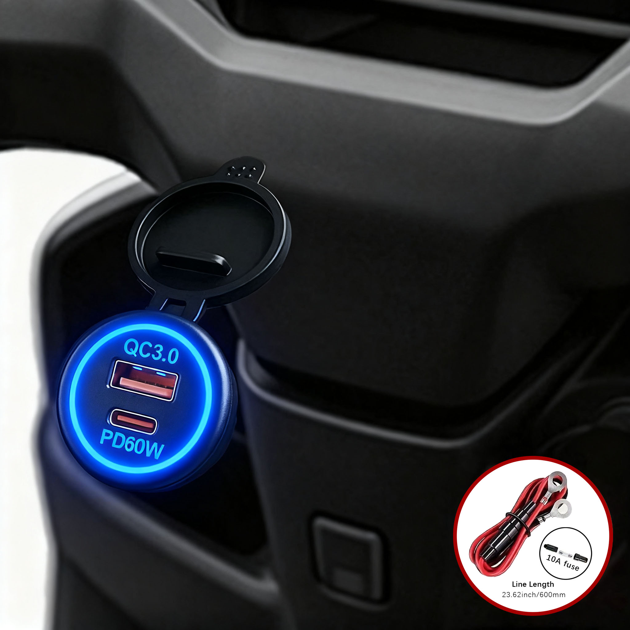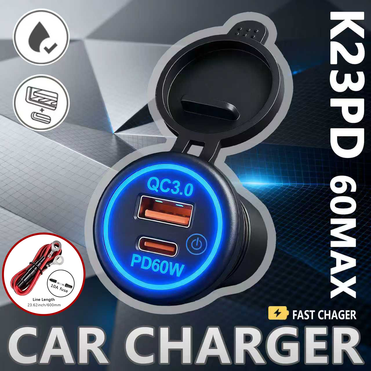 The new 60W car, motorcycle and ship's mobile phone is specially designed for charging and refitting, with intelligent super fast charging, and the A +C USB charger PD+QC3.0 super fast charging.