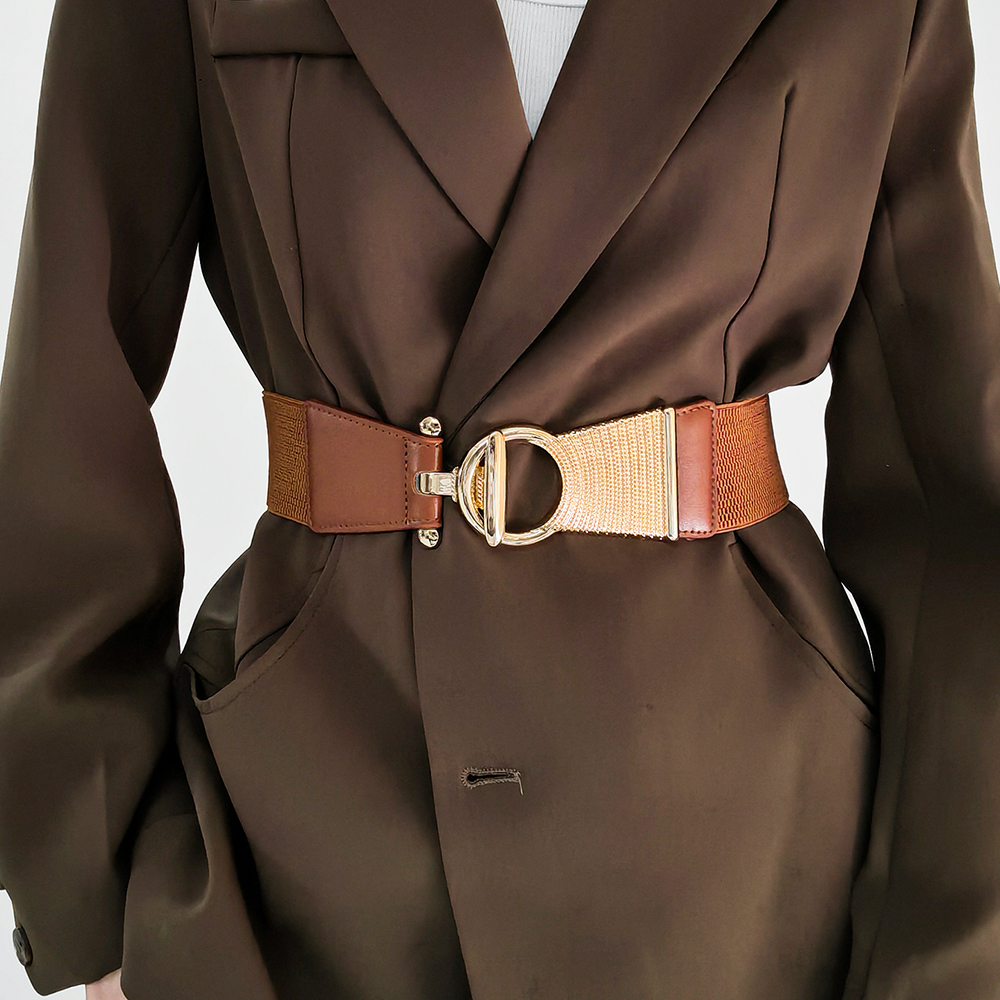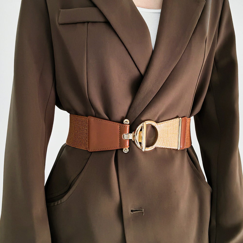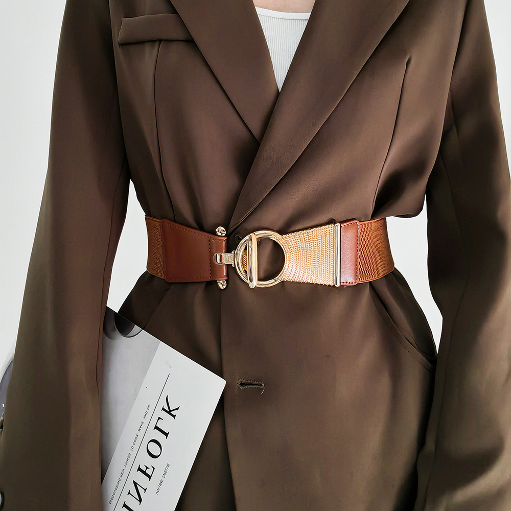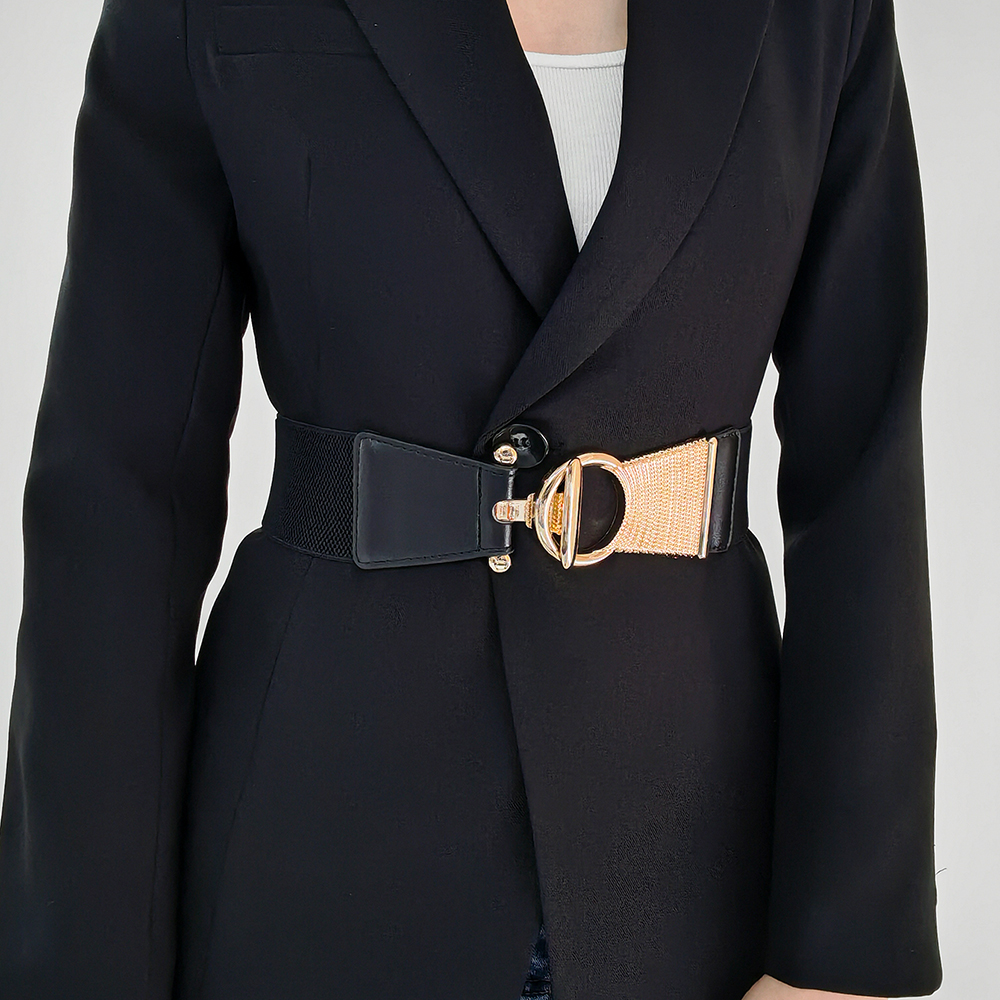 The New Girdle In Autumn And Winter Is Decorated With Black Metal Buttonhead And Skirt Coat