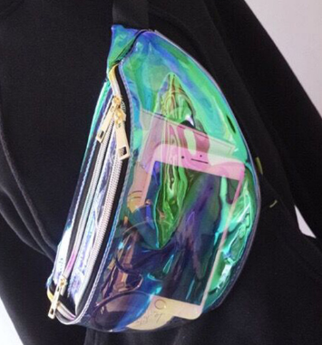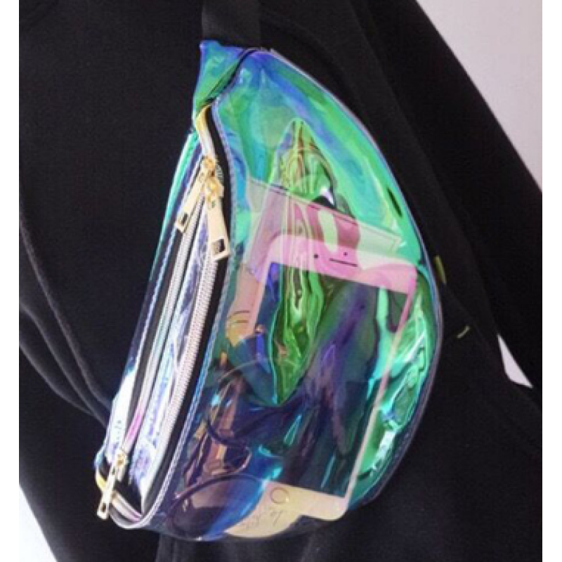 The original suefeng laser transparent waist bag women's messenger bag sports running multi-functional collection of silver boobs.