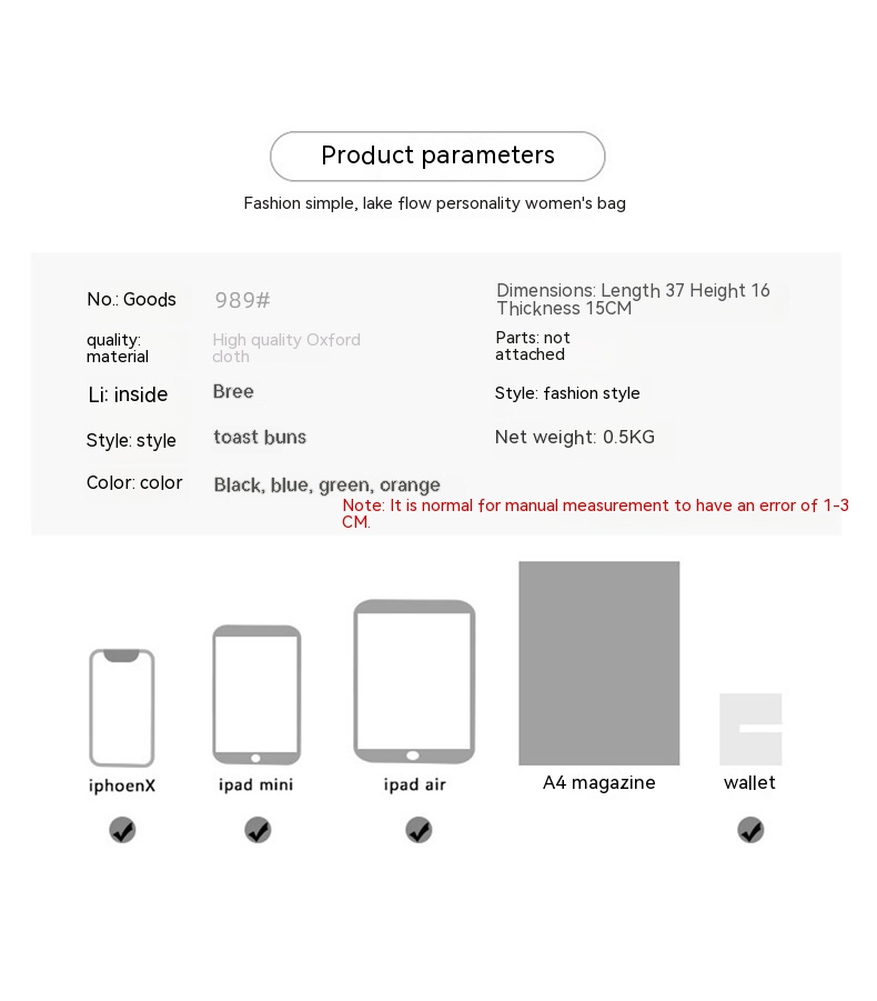 Material: Oxford cloth