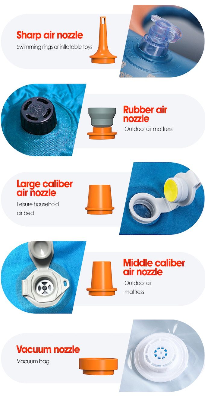 TYPE-C Cable x1,Storage Bag x1,Nozzle x5,Inflation pump * 1