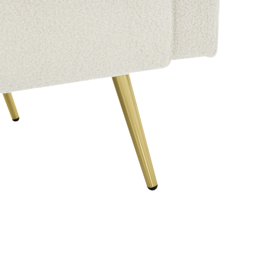 This sofa bed combines luxury with functionality, with premium Sherpa fabric and gold-plated legs, creating a soft, textured feel and an elegant, natural look. The gold-colored legs add a touch of luxury, while the soft, high-density foam seat is both comfortable and supportive. The backrest is padded with soft cotton, which relaxes the lumbar region and provides a solid, comfortable feel whether you are sitting or lying down. The sofa features a sturdy wooden frame, ensuring long-lasting stability and durability, making it perfect for everyday use. Its versatile design allows the backrest to be easily tilted, turning the sofa into a bed, perfect for hosting overnight guests. In addition, two practical side pockets provide convenient storage space for books, magazines or remote controls, so you can always keep your most important things close at hand.