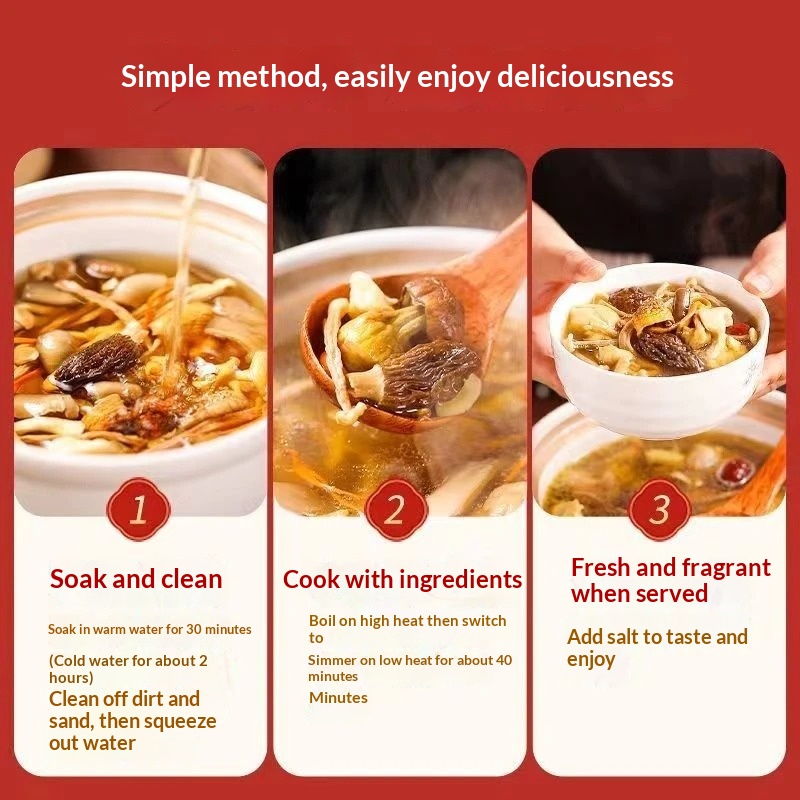 Ingredients: Morchella, Pleurotus eryngii, Agrocybe aegerita, Pleurotus ostreatus, Cordyceps, red dates, deer.