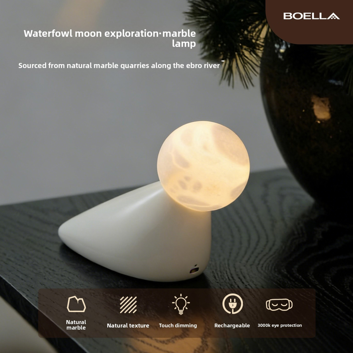 Waterbird Moon Alabaster Lamp | Hand-Selected Spanish Marble | Cordless Dimmable Ambient Light | Modern Luxury Desk Decor
