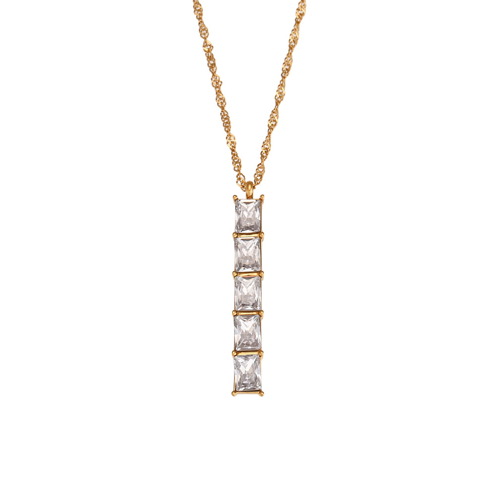 Color: five square zircon stick pendant necklace-Gold