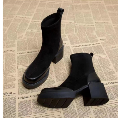 Thick Bottom Chunky Heel Real Soft Leather Round Toe Retro Socks Boots For Women
