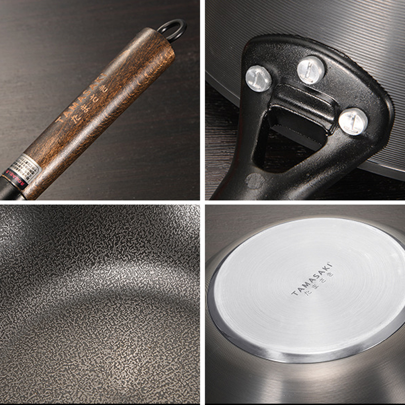 5. The bottom of the pot adopts seamless alloy welding technology, which is evenly heated, stir-frying on medium heat, energy-saving and energy-gathering, no need to pick the stove, and greatly reduces the kitchen fumes that plague the health of the family.