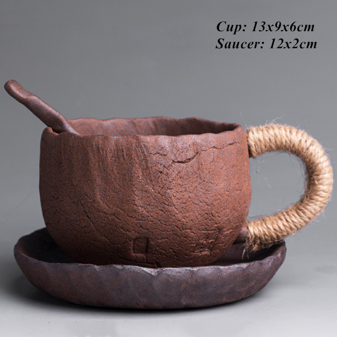 A Hand squeezed stoneware tied rope mug