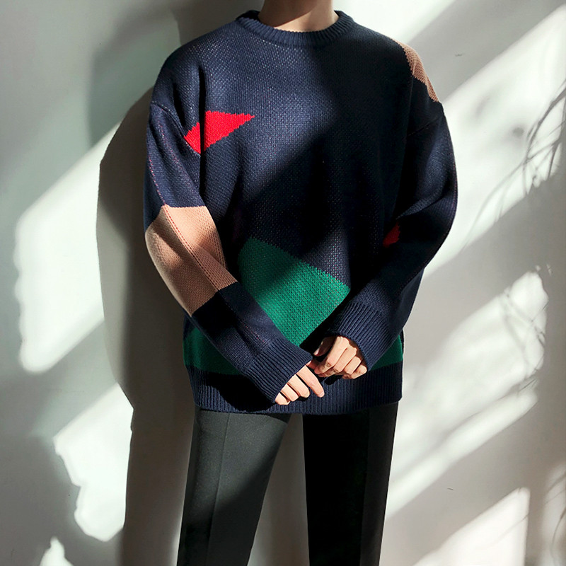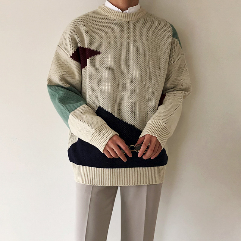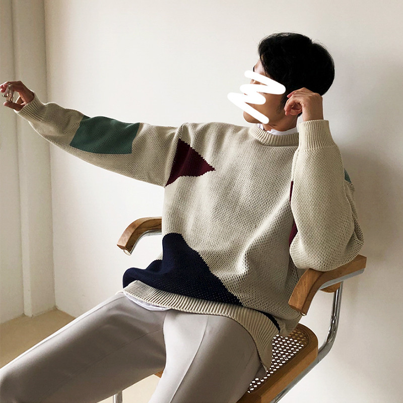 Thick Color-blocking Round Neck Lazy Loose Knit Sweater