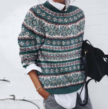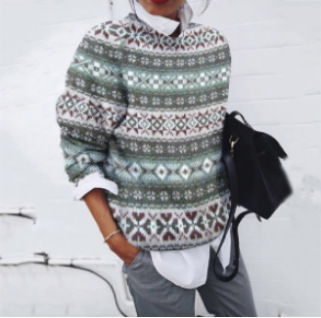 Thick Needle Digital Printing Women's Round Neck Sweater