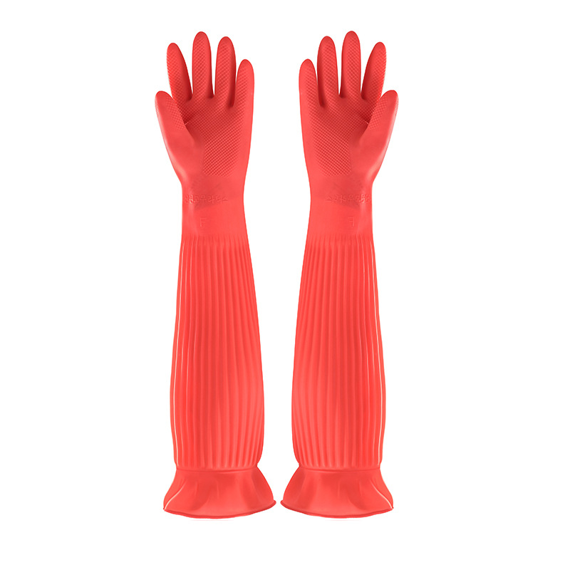 Color: latex gloves red (long arm 38CM) thick 105g, latex gloves green (long arm 38CM) extra thick 120g, latex gloves natural color (long arm 38CM) 120g, latex gloves 55cm long red about 195g
