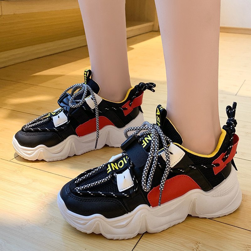 Thick-soled Color-blocking Mesh Sports Student Single Shoes Women