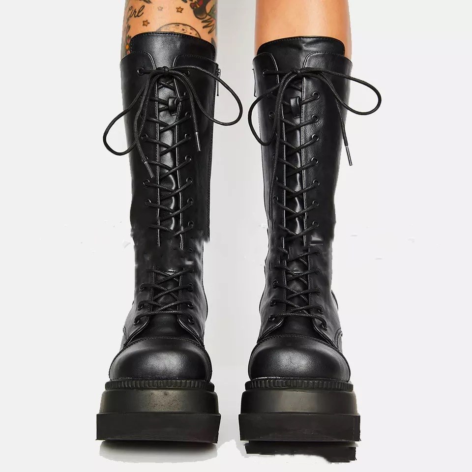 Thick-soled lace-up knight booties