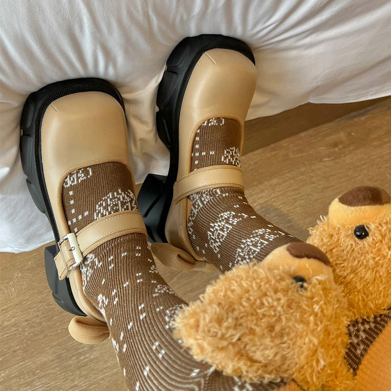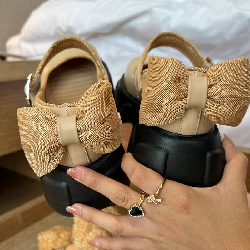 Thick Soled Mary Jane Shoes With Shallow Bow
