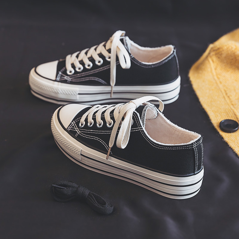 Thick-soled Women's All-match White Canvas Sneakers Explosive Single Shoes