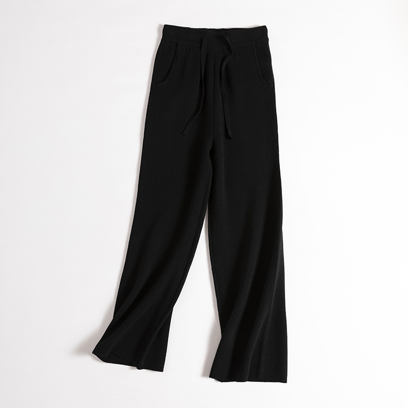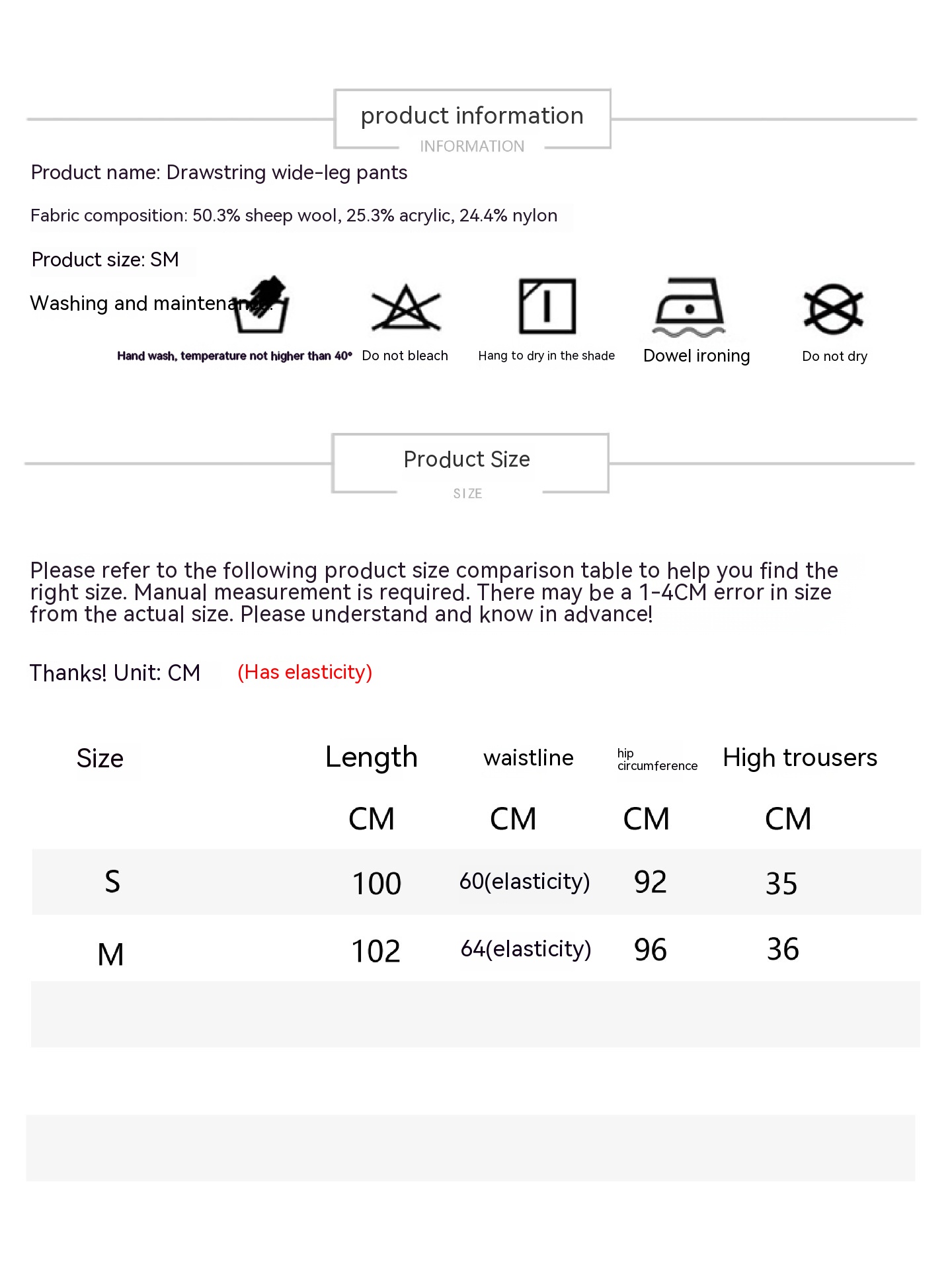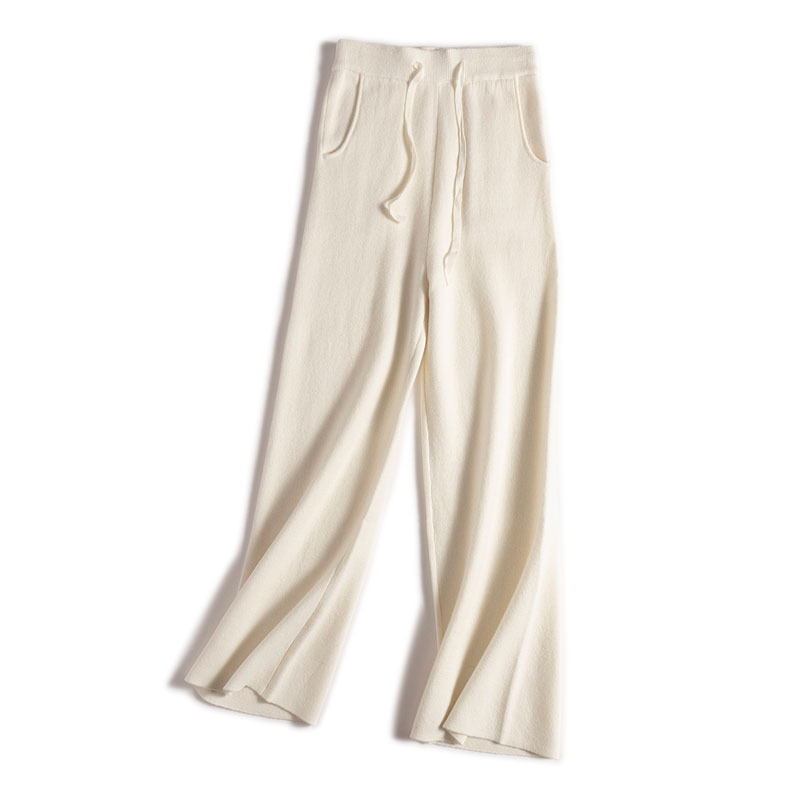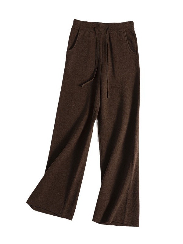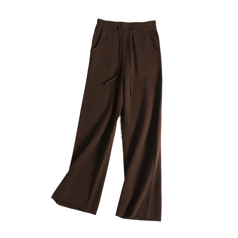 Thick Version Soft Glutinous Wool Drawstring High Waist Straight Wide Leg Pants
