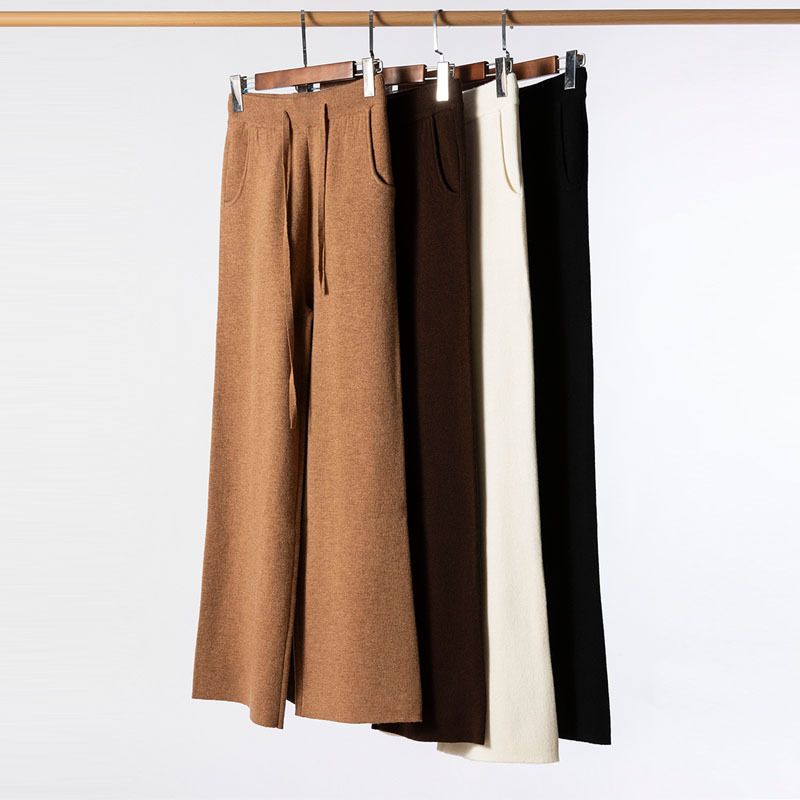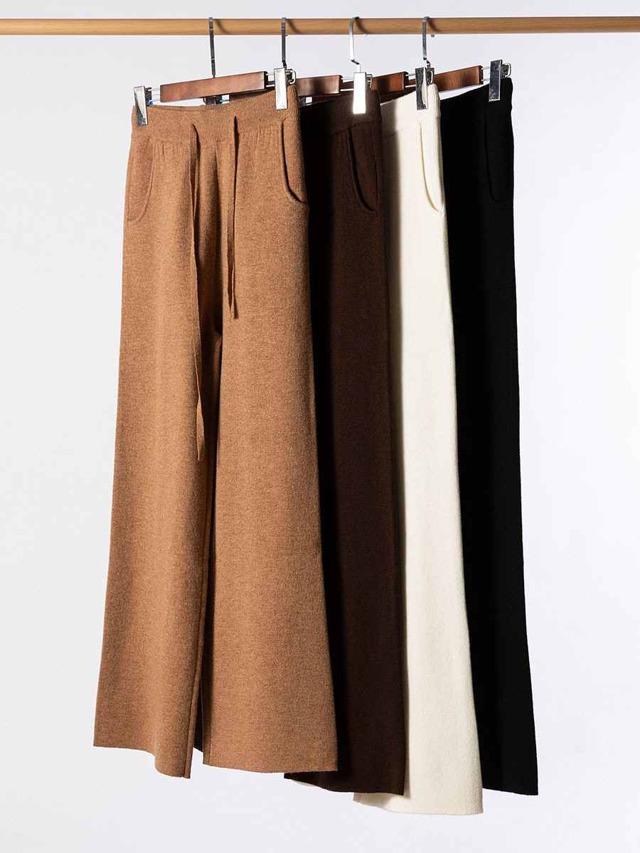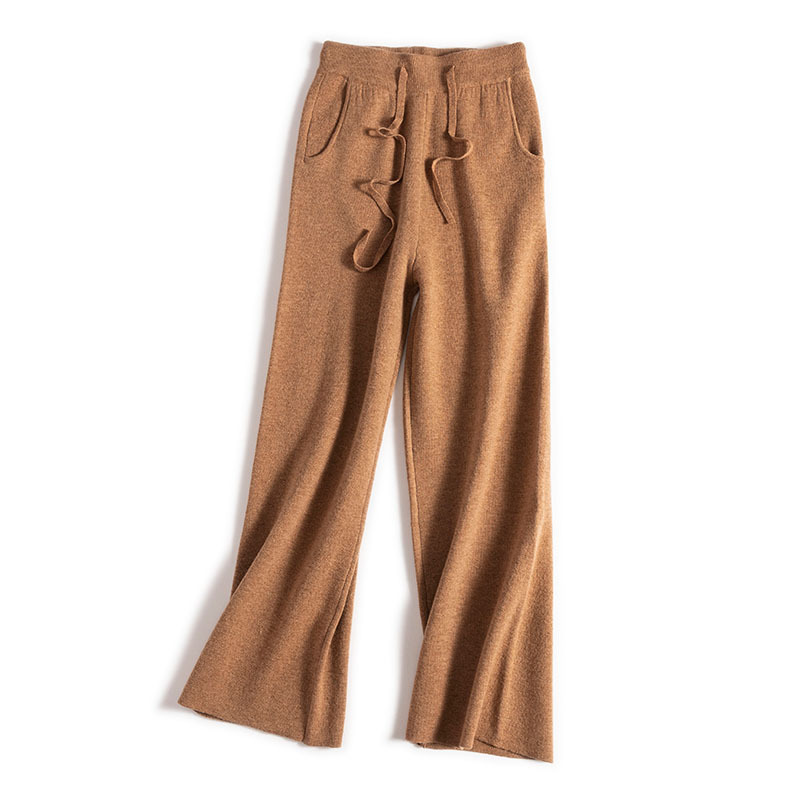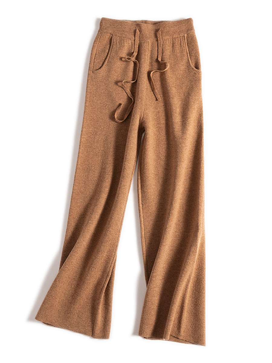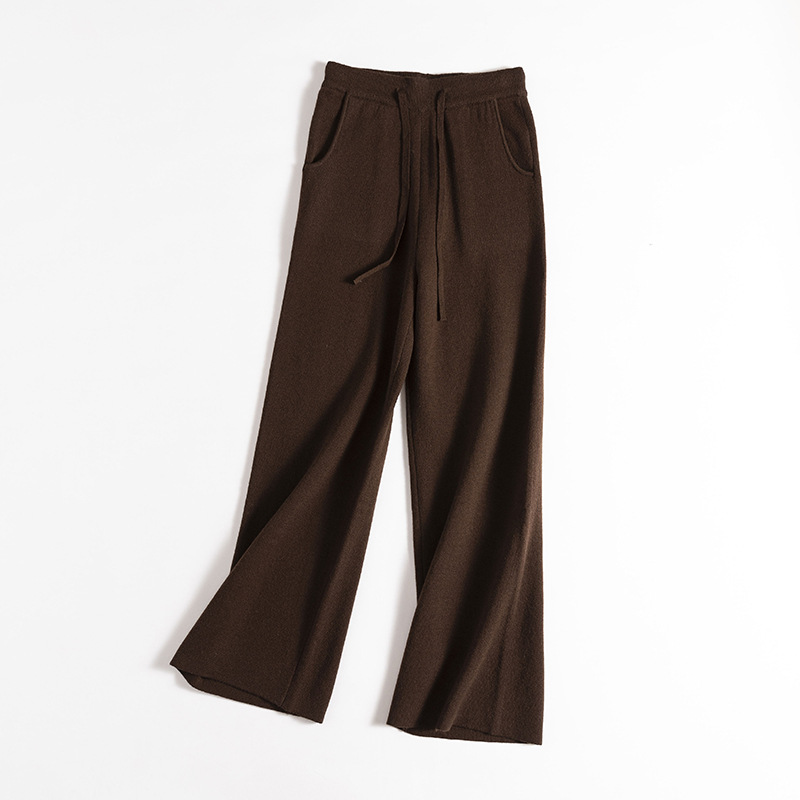 Thick Version Soft Glutinous Wool Drawstring High Waist Straight Wide Leg Pants