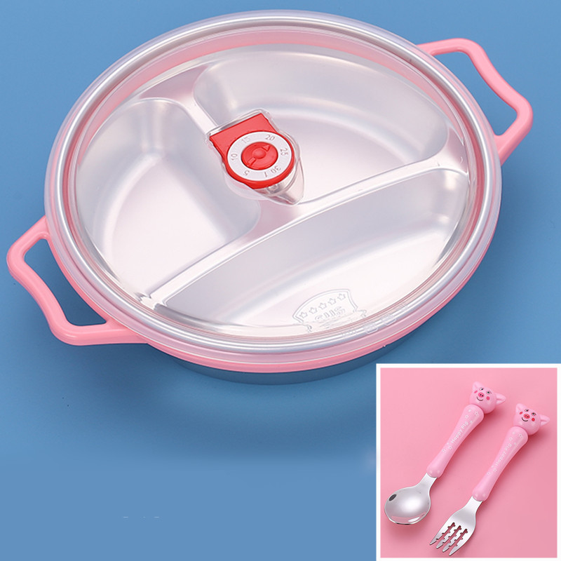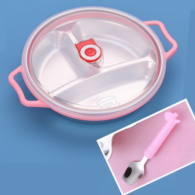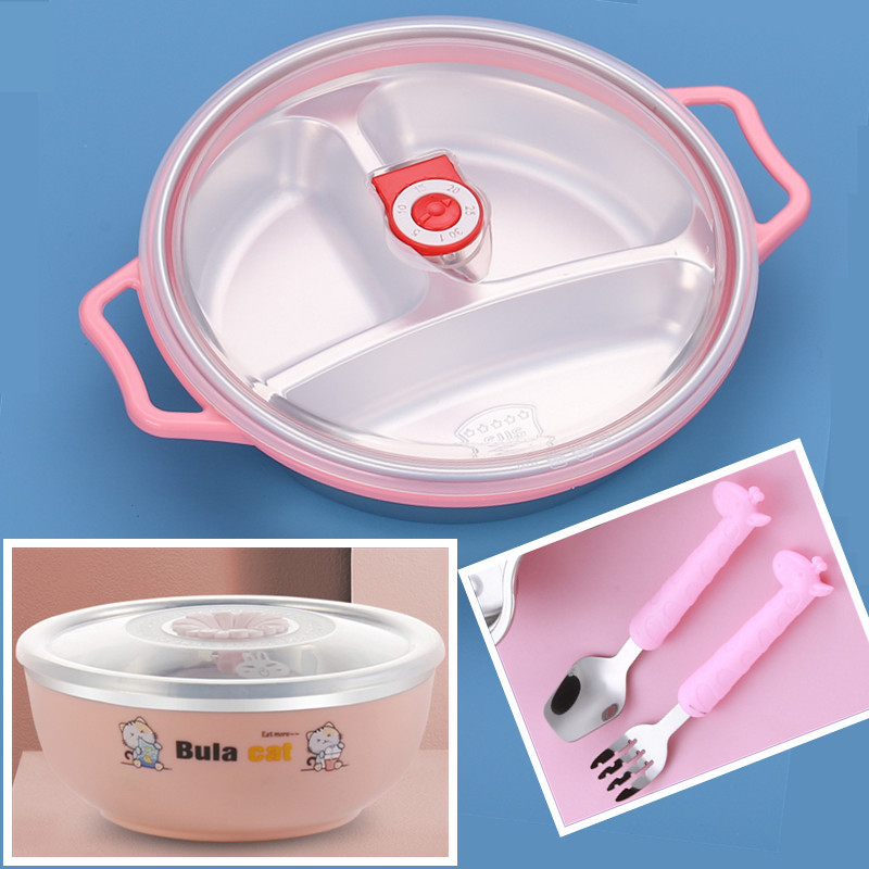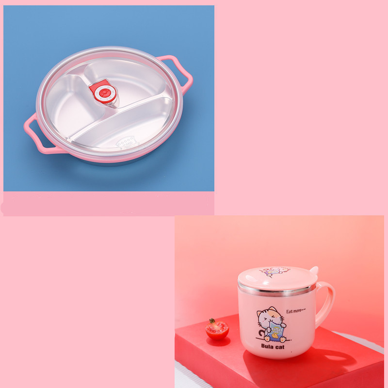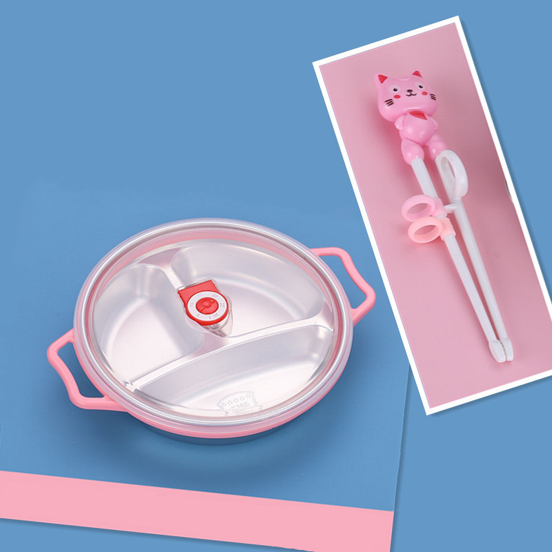 18 style: 304 pink dinner plate with lid + powder learning chopsticks