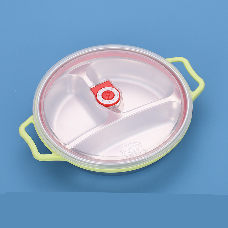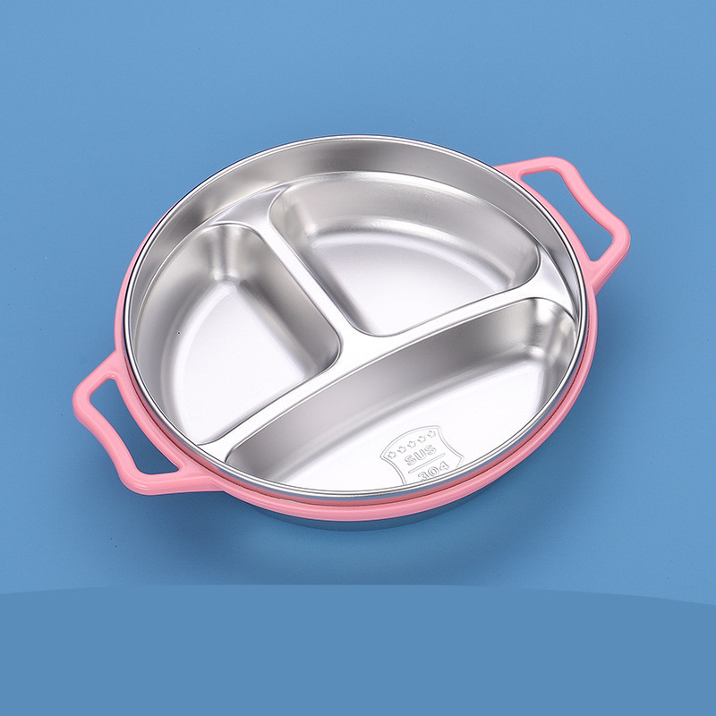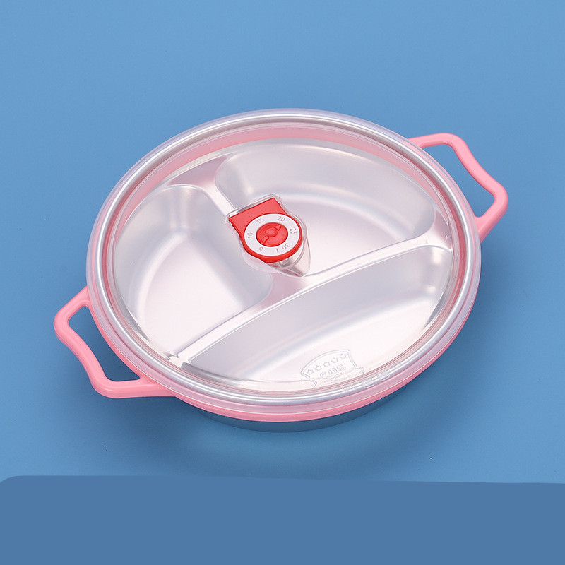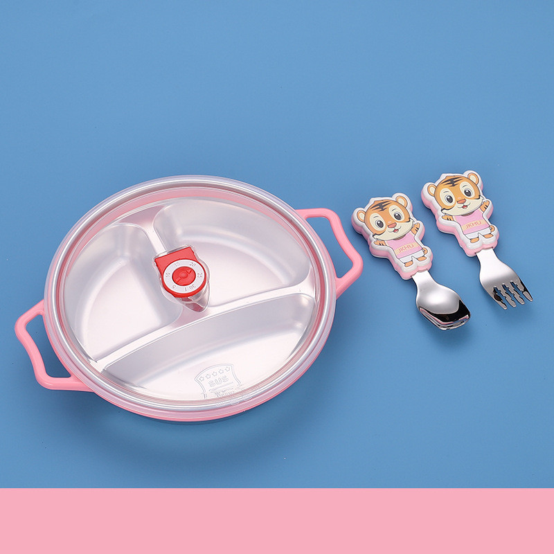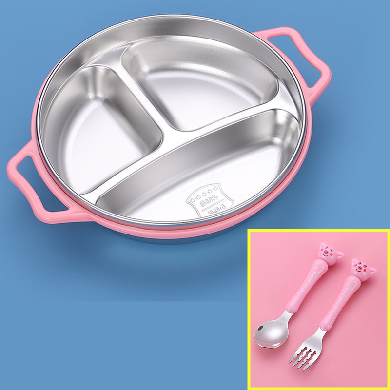 18 style: 304 pink dinner plate with lid + powder learning chopsticks