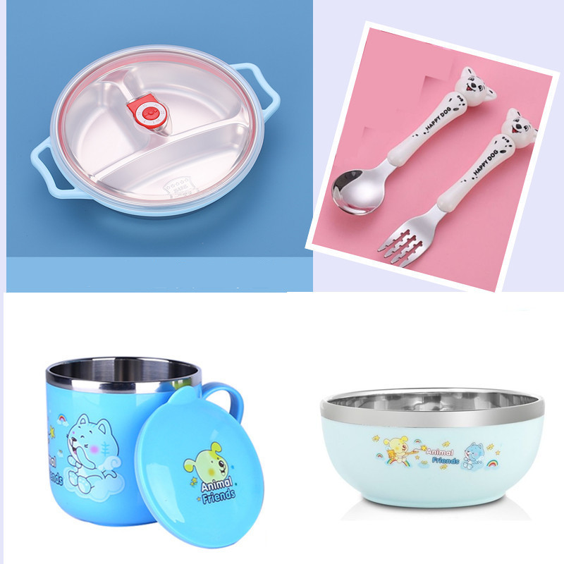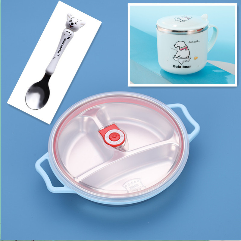 20 style: 304 blue handle dinner plate with lid + bear cup puppy spoon