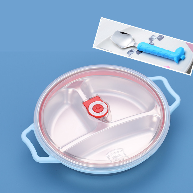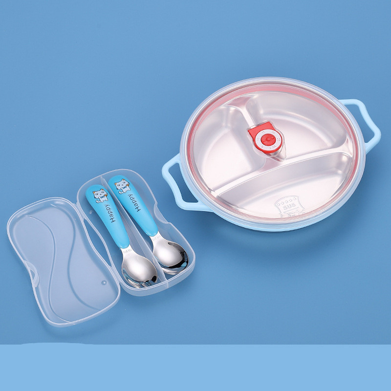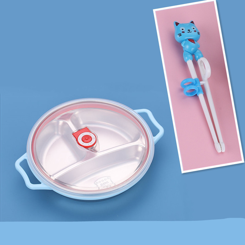 Style 17: 304 blue dinner plate with lid + blue learning chopsticks
