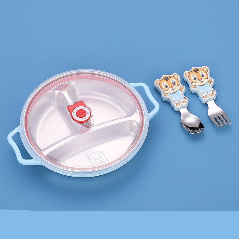 12 styles: 304 blue handle plate with lid + blue tiger fork and spoon