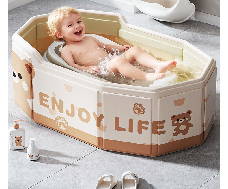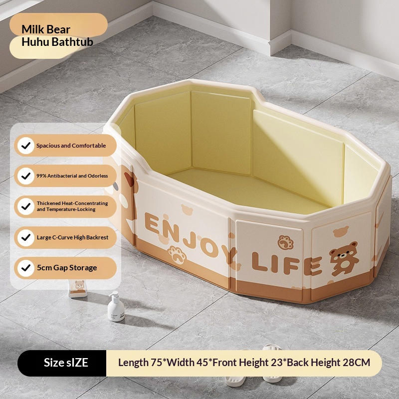 Color: 75*45cm Polka-Dot Cloud Panel Baby Bathtub, 75*45cm Mung Bean & Mint Panel Baby Bathtub, 75*45cm Dinosaur Goodie Panel Baby Bathtub, 75*45cm Warm Pink Rabbit Panel Baby Bathtub, 75*45cm Milk Bear Hoo-Hoo Panel Baby Bathtub