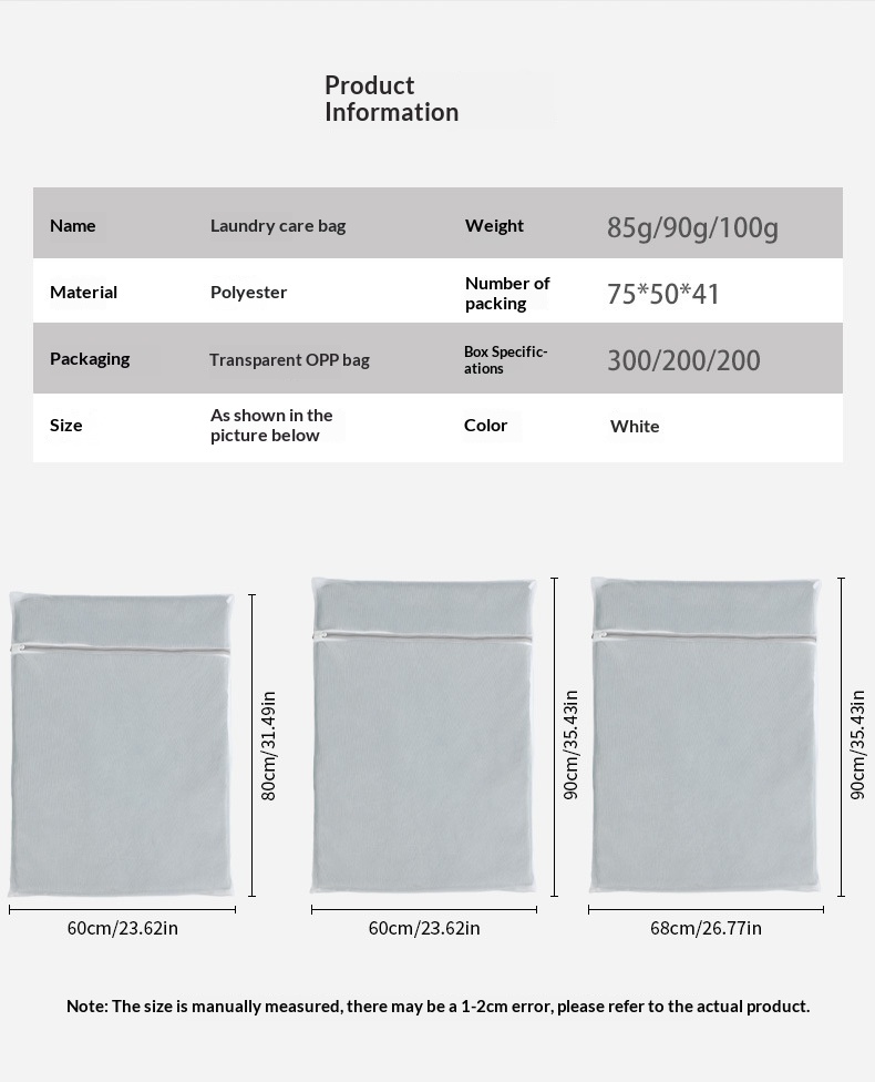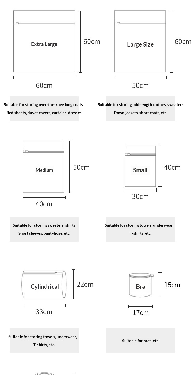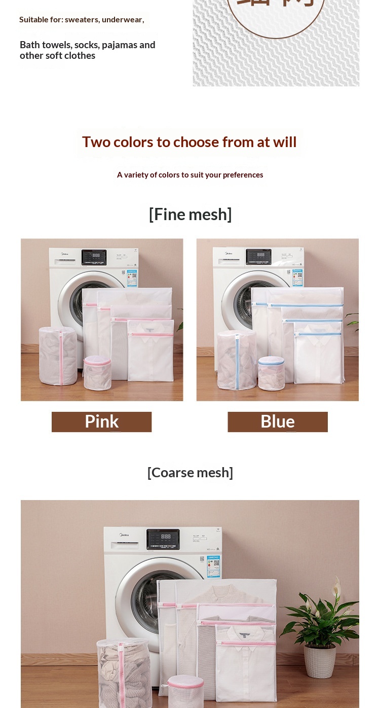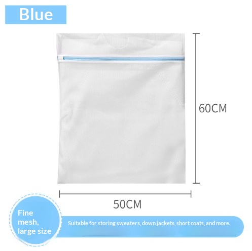 Colors: 770 g blue fine-mesh mini size (20 x 30 cm), 70 g blue fine-mesh small size (30 x 40 cm), 70 g blue fine-mesh medium size (40 x 50 cm), 70 g blue fine-mesh large size (50 x 60 cm), 70 g blue fine-mesh extra-large size (60 x 60 cm), 70 g blue fine-mesh cylindrical shape (22 x 33 cm), 70 g blue fine-mesh bra bag (16 x 16 cm), 70 g blue fine-mesh six-piece set (small, medium, large, extra-large, cylindrical, bra bag)