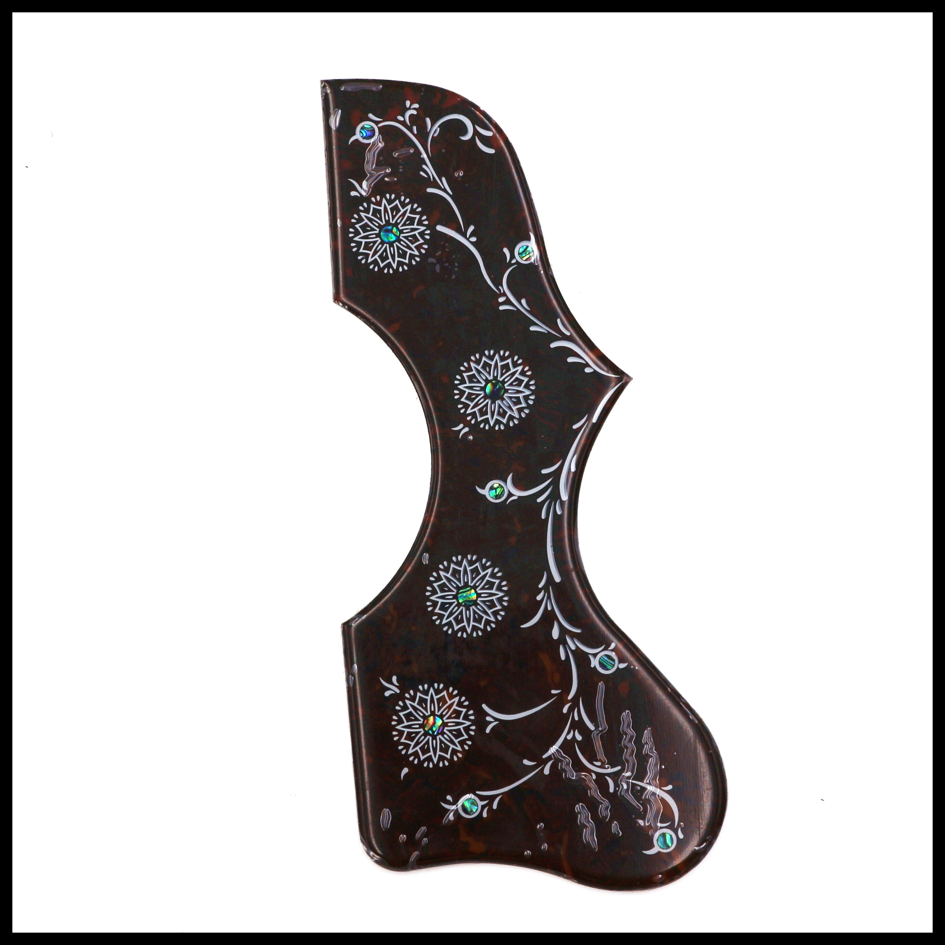 Protection board material: Imported 0.8mm thickness celluloid board plus printed patterns. Some styles are made by pasting shells and then sealing with soft glue. After sealing with soft glue, the thickness is about 1.5mm-2.0mm