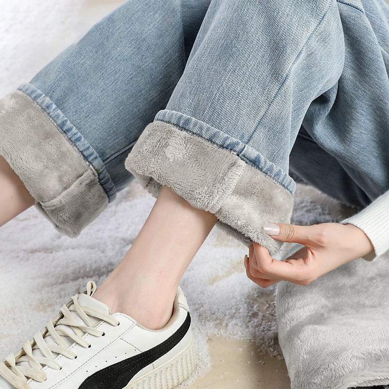 Thickened Straight Loose Wide Leg Denim Pants