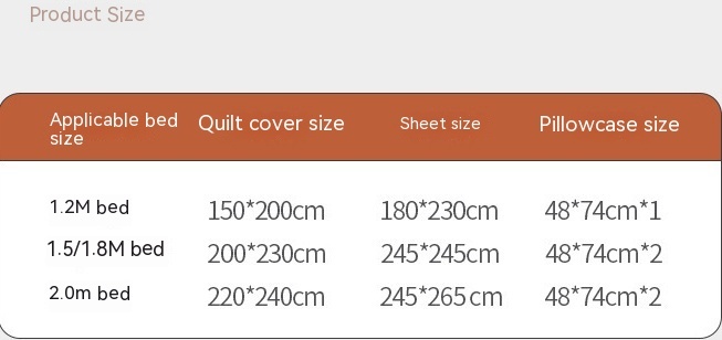 Size specification: four-piece 1.5m bed sheet, four-piece 1.8m bed sheet, four-piece 2.0m bed sheet, three-piece 1.5m fitted sheet four-piece suit, 1.8m fitted sheet four-piece suit, 1.2m bed sheet