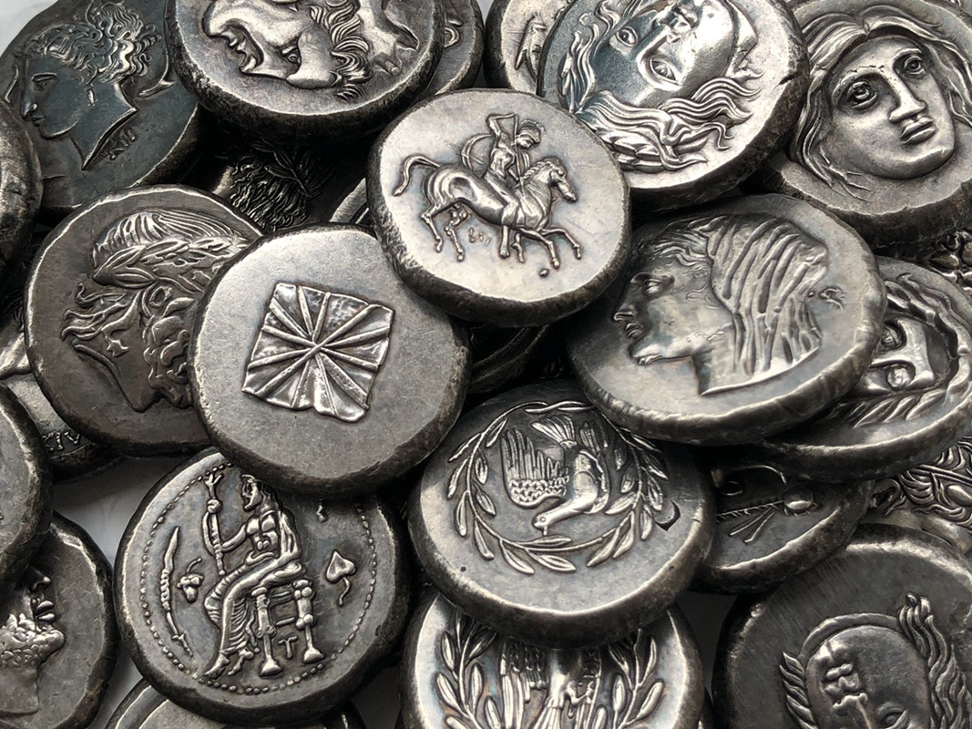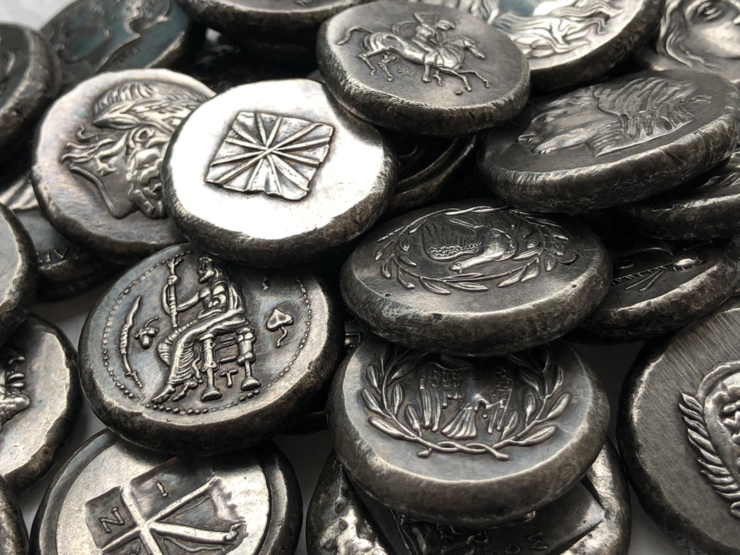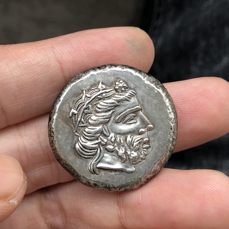 Thickened Weighted Greek Coin Brass Silver Plated Antique Crafts
