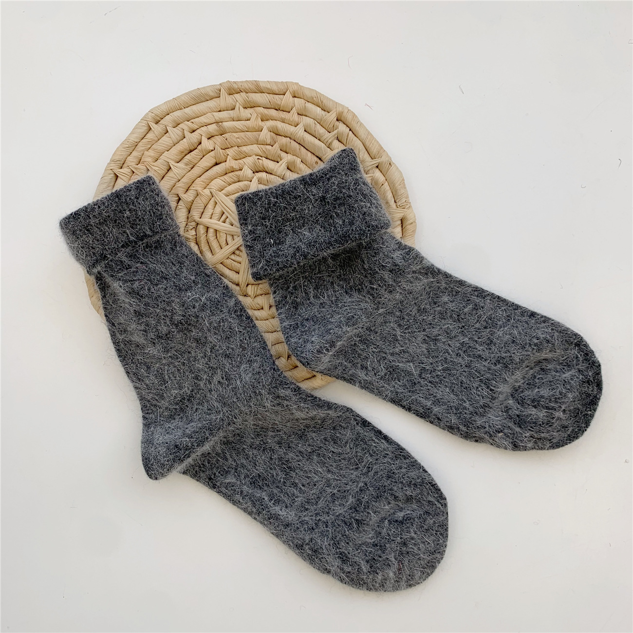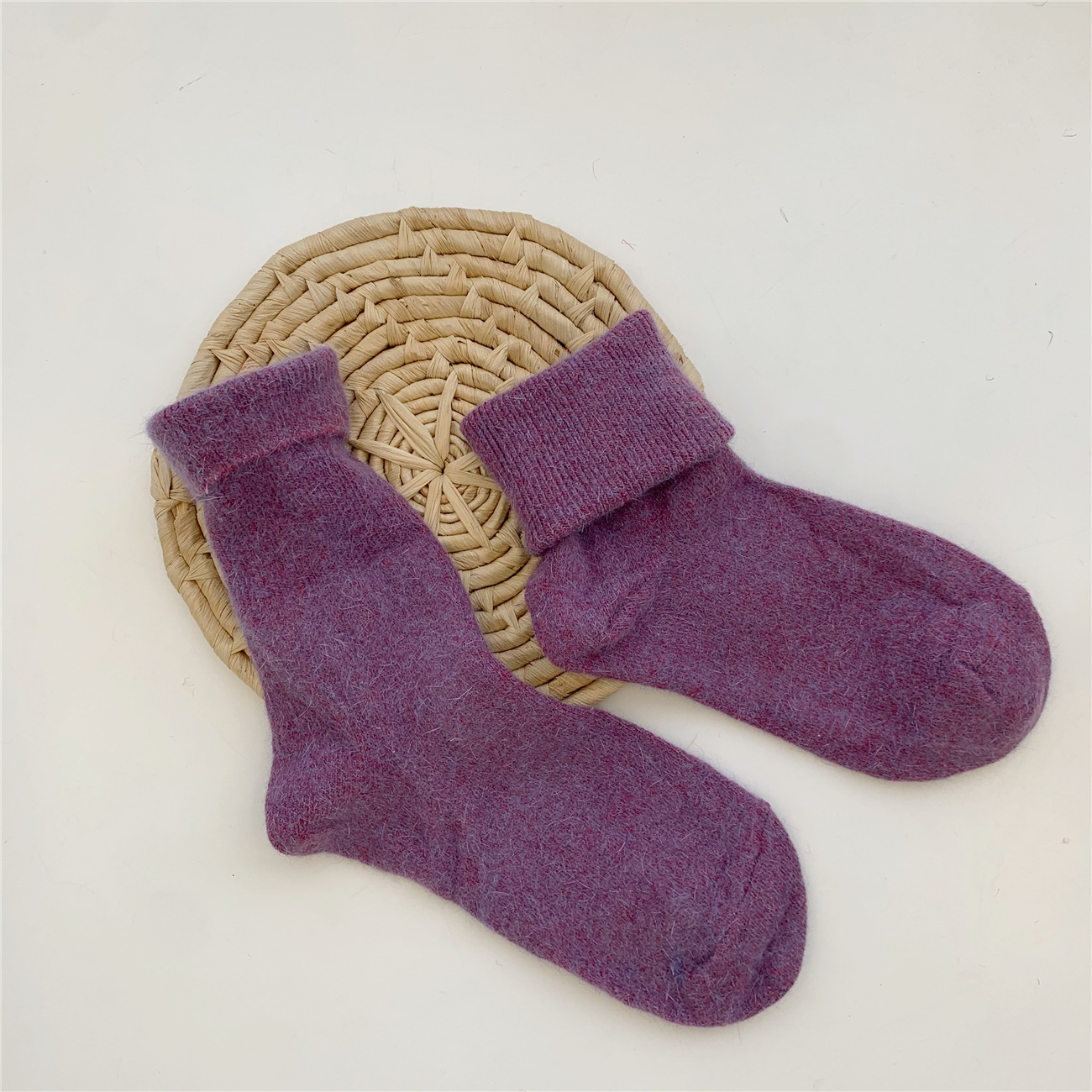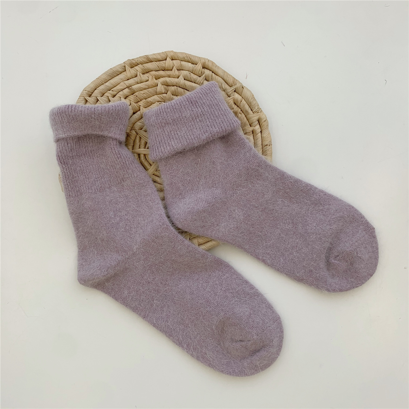 Thickening Warm Solid Color Rabbit Fur Women's Socks
