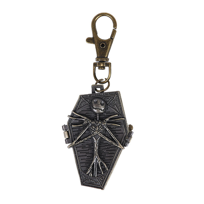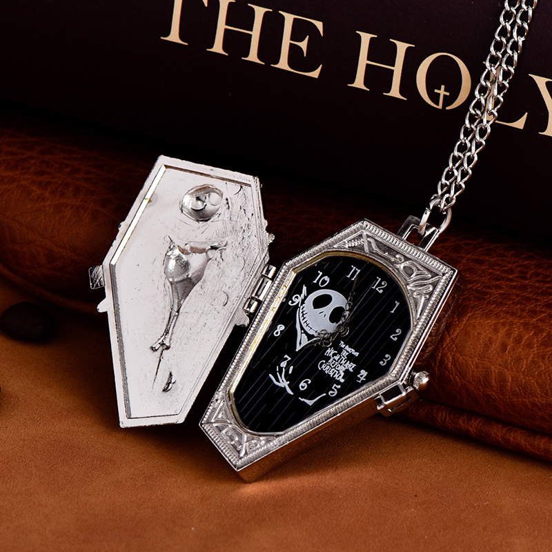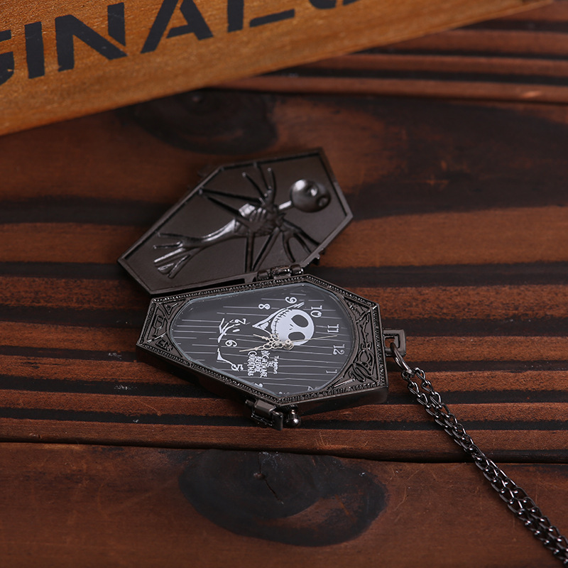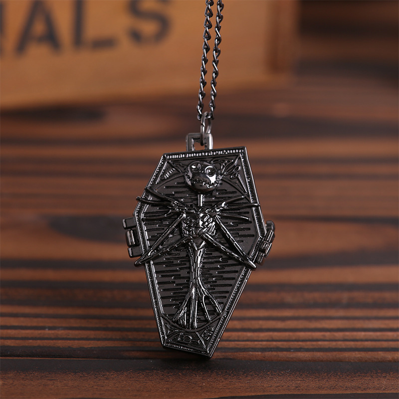 Thin Chain Black Silver Skull Brat Coffin Pocket Watch