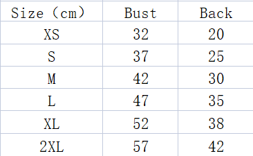 Size: XS (recommended weight 1-3 jin), S (recommended weight 3-5 jin), M (recommended weight 5-8 jin), L (recommended weight 8-11 jin), XL (recommended weight 11-15 jin), XXL (recommended weight 15-20 jin)
