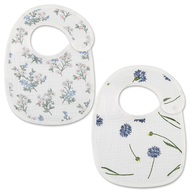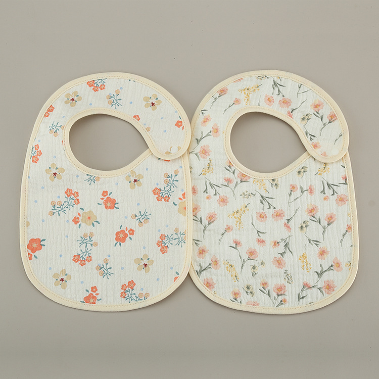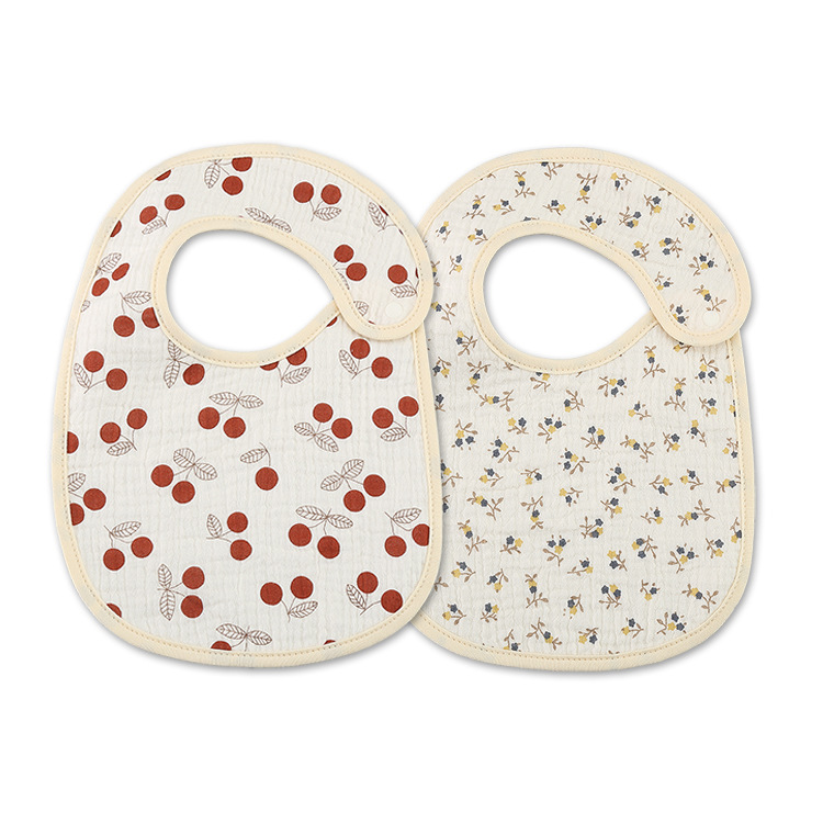 Style19. 2 pieces of cherry floral gauze waterproof bib,